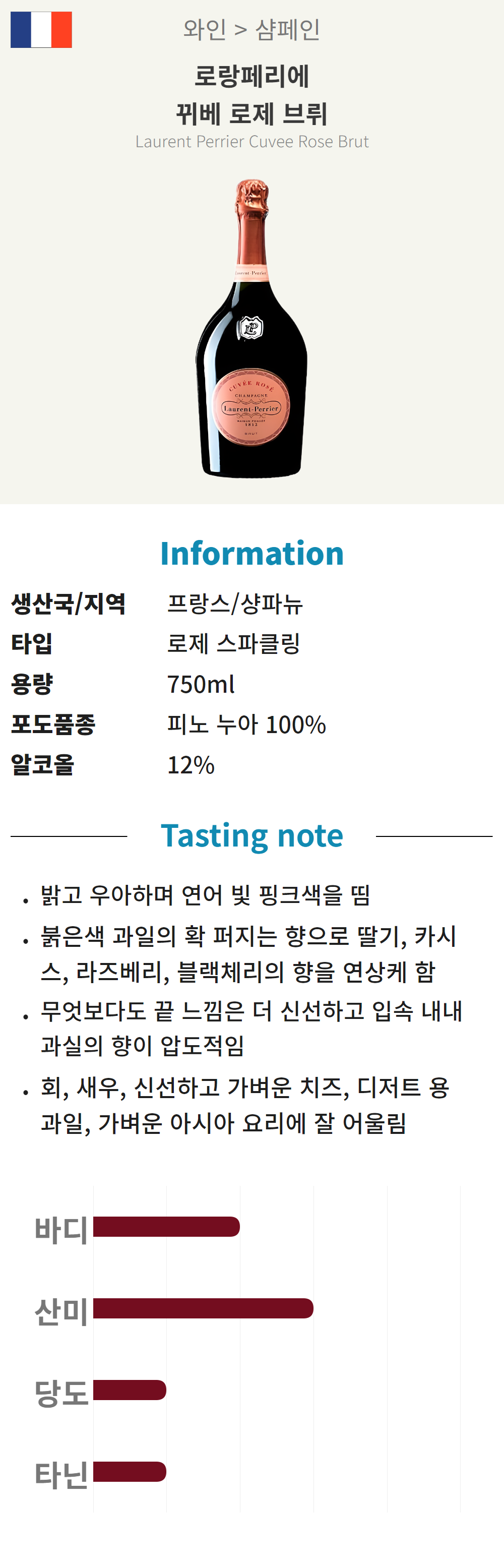 로랑 페리에 뀌베 로제 브뤼 (프랑스/산미/샴페인)