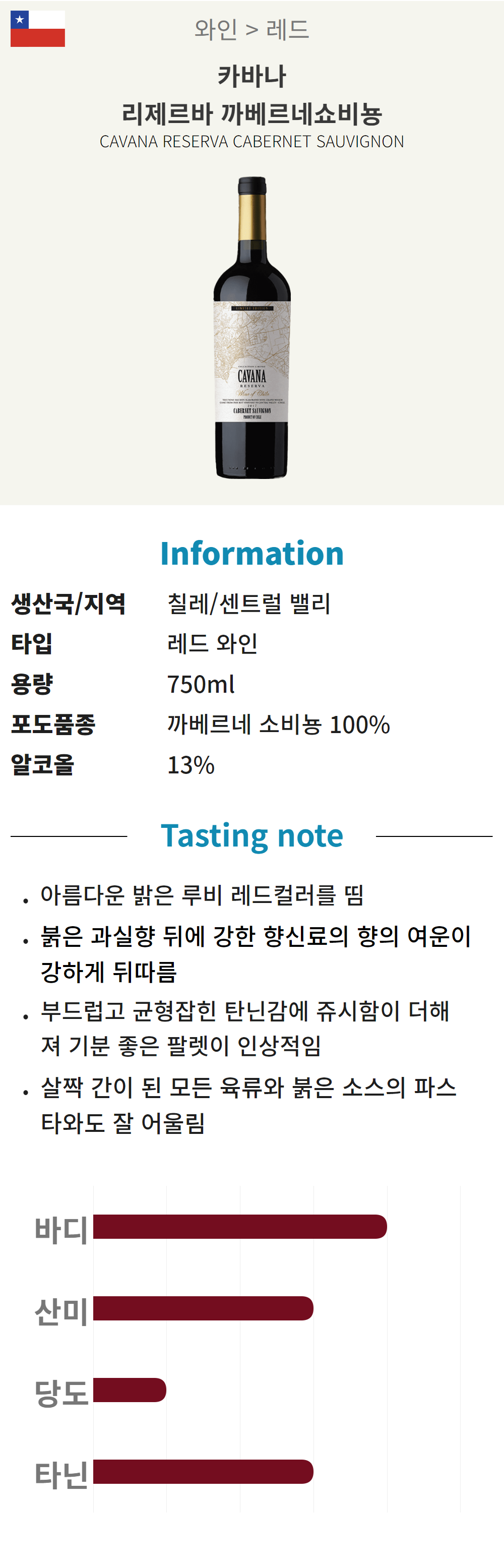 카바나 레세르바 까베르네소비뇽 (칠레/산미/레드)