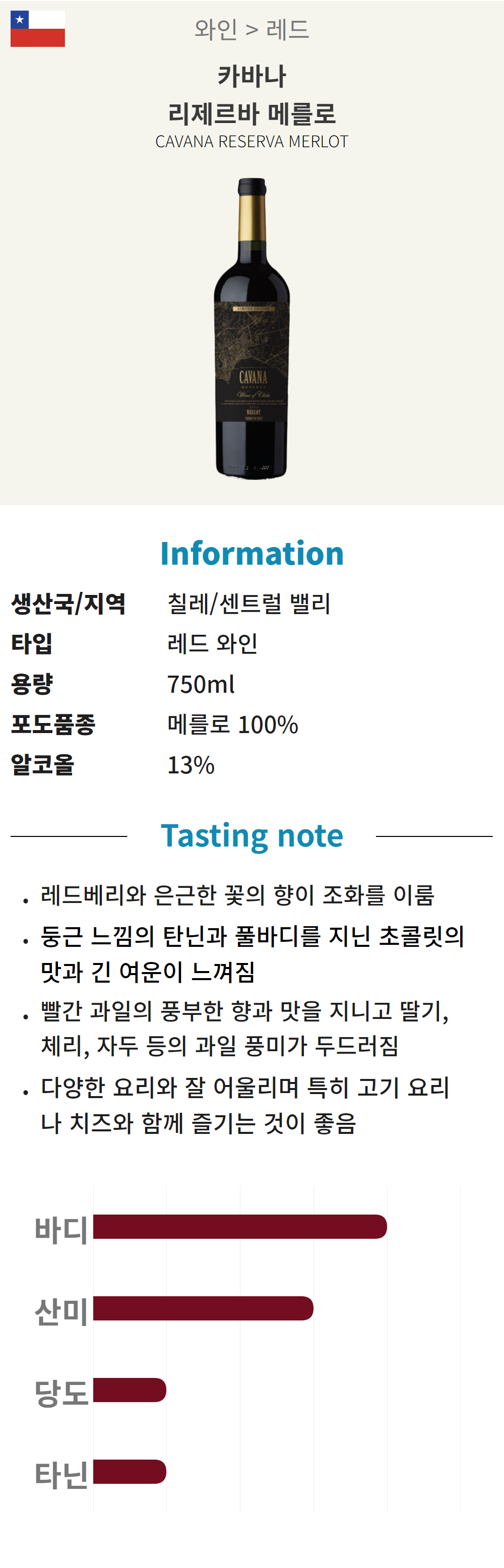 카바나 레세르바 메를로 (칠레/산미/레드)
