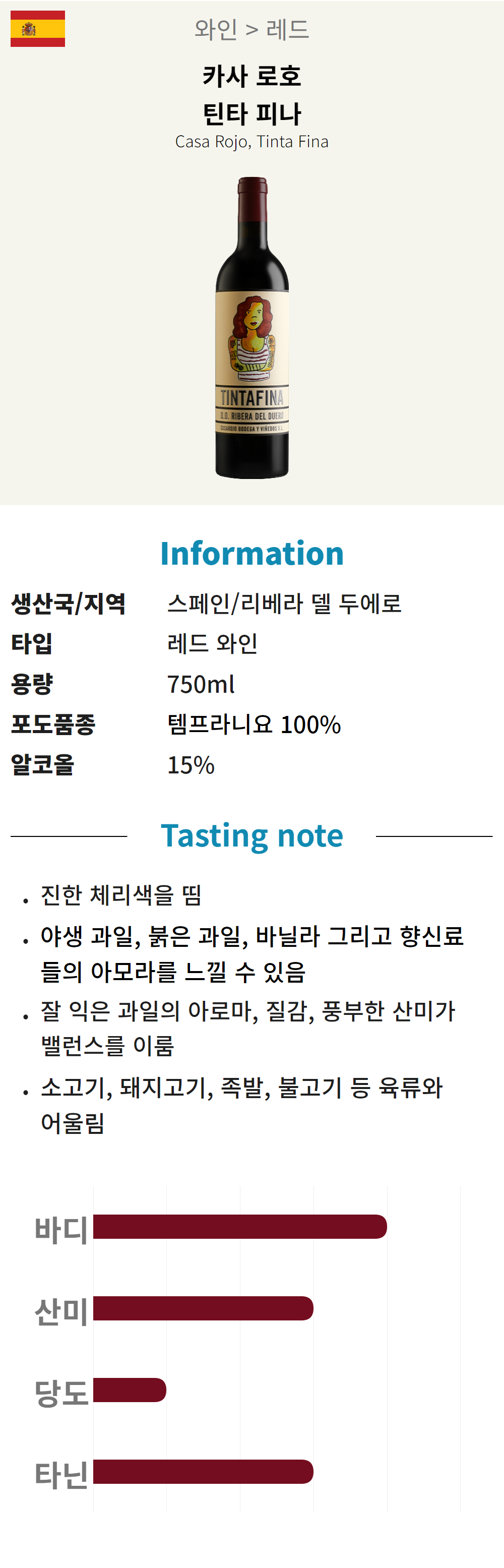 카사 로호 틴타 피나 (스페인/산미/레드)