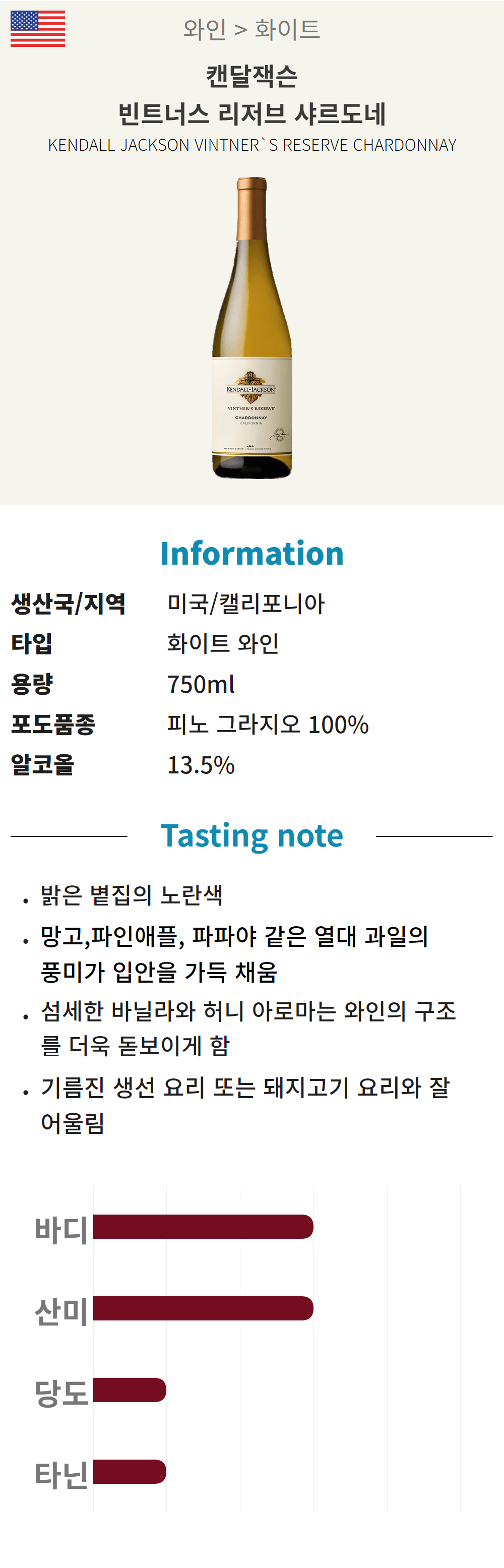 캔달잭슨 빈트너스 리저브 샤르도네 (미국/산미/화이트)