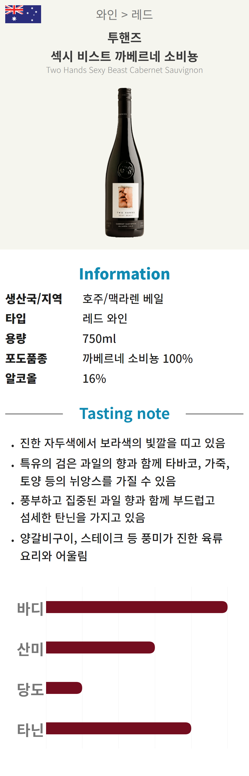 투핸즈 섹시 비스트 까베르네소비뇽 (호주/산미/레드)