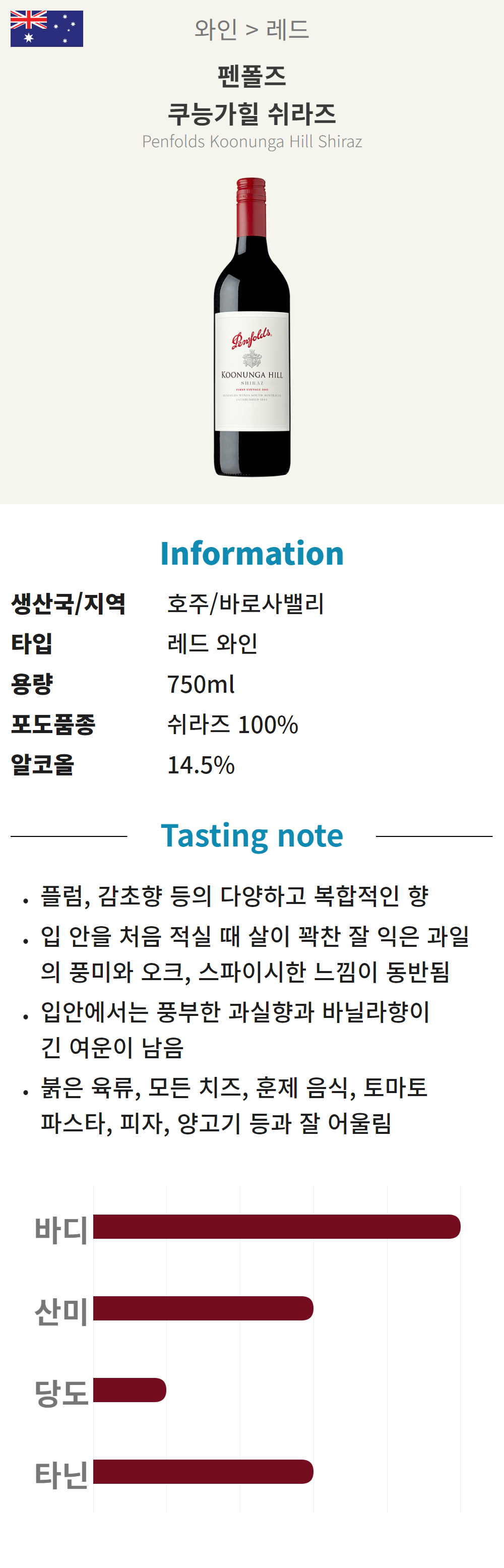 펜폴즈 쿠능가 힐 쉬라즈 (호주/드라이/레드)