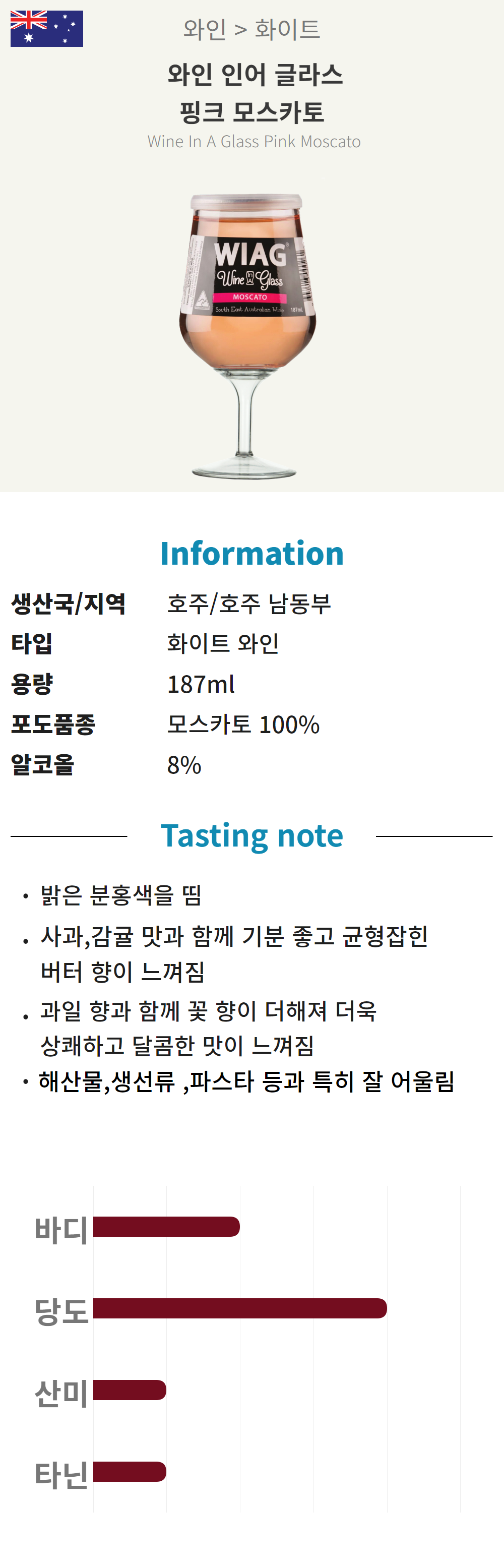 와인인어글라스 핑크 모스카토 187ml*24 (호주/스위트/화이트)