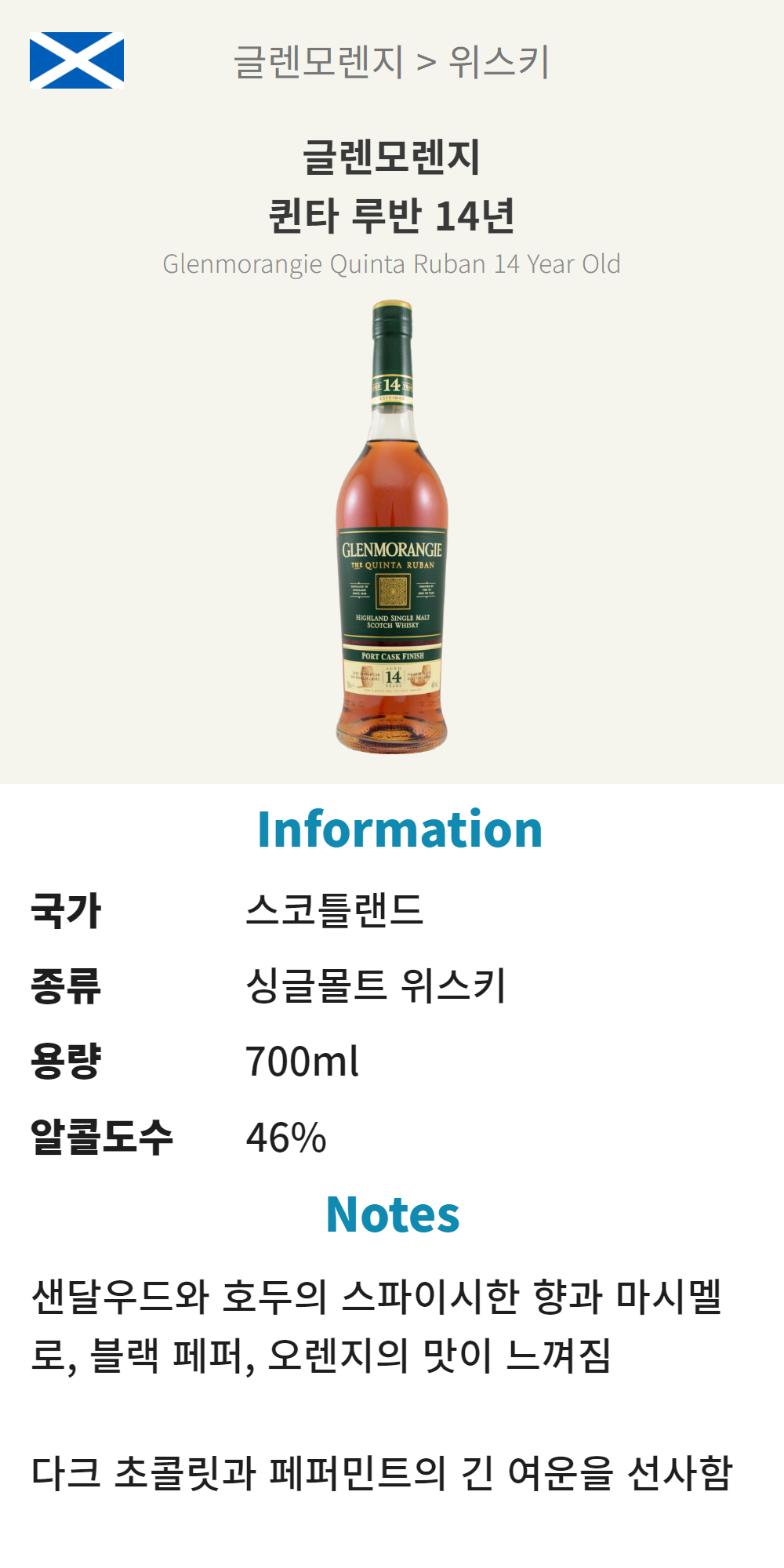 글렌모렌지 퀸타 루반 14년 (스코틀랜드/싱글몰트 위스키/700ml/유흥)
