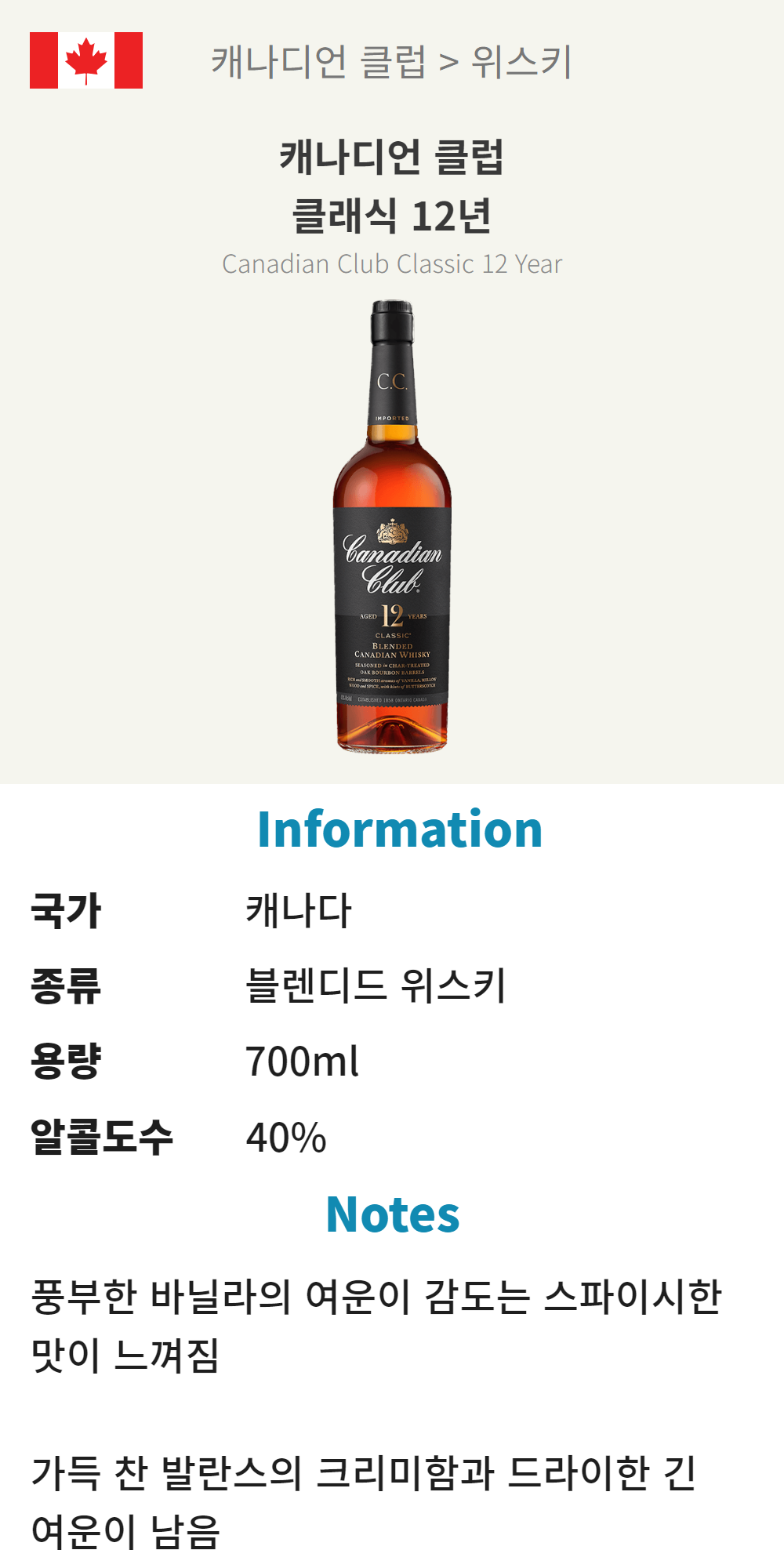 캐나디언 클럽 클래식 12년 (캐나다/블렌디드 위스키/700ml/유흥)