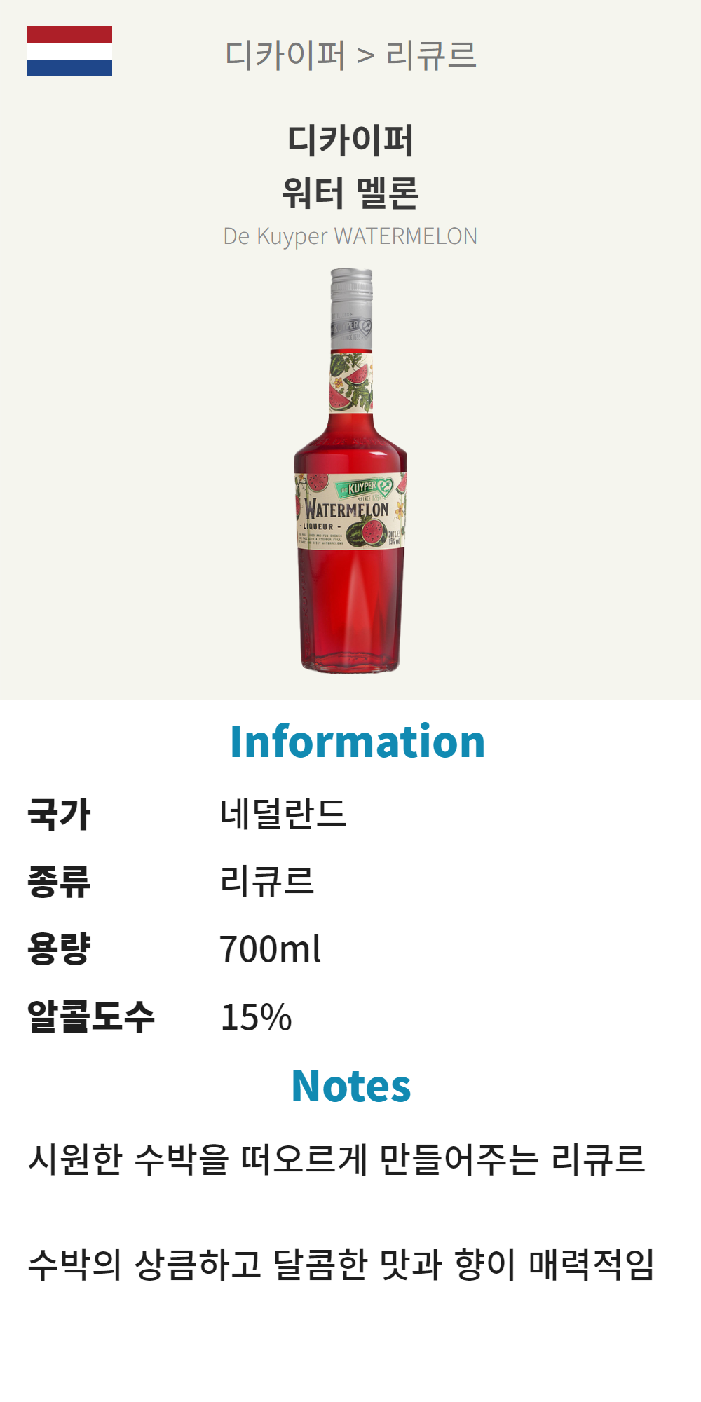 디카이퍼 워터 멜론 (네덜란드/리큐르/700ml/가정)