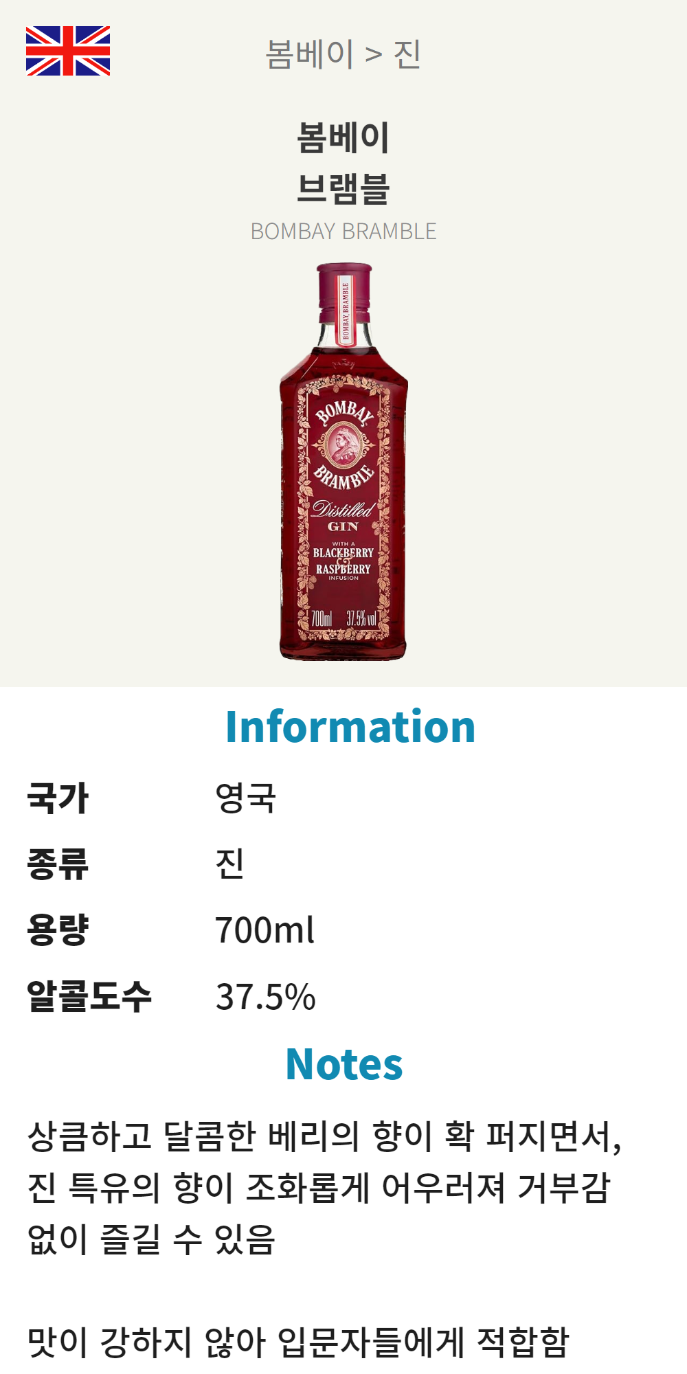 봄베이 브램블 (영국/진/700ml/가정)
