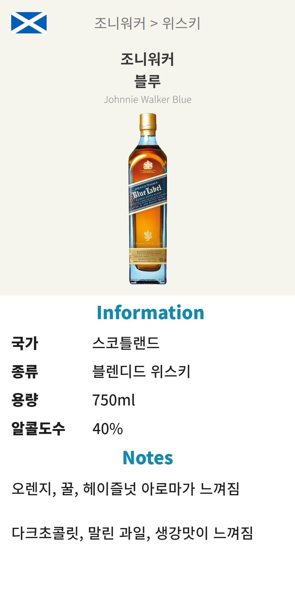 조니워커 블루 (스코틀랜드/블렌디드 위스키/750ml/가정)