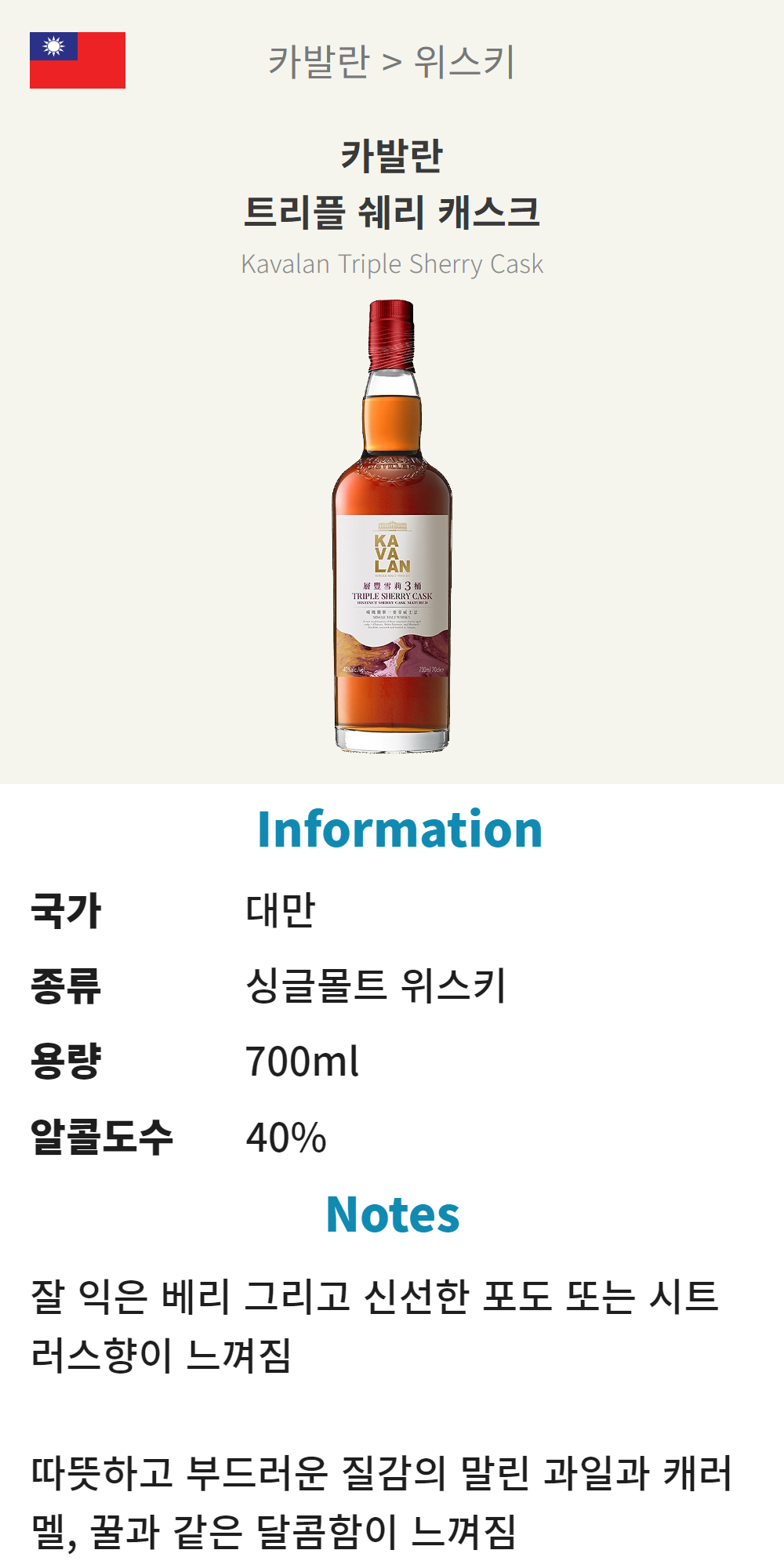 카발란 트리플 쉐리 캐스크 (대만/싱글몰트 위스키/700ml/가정)