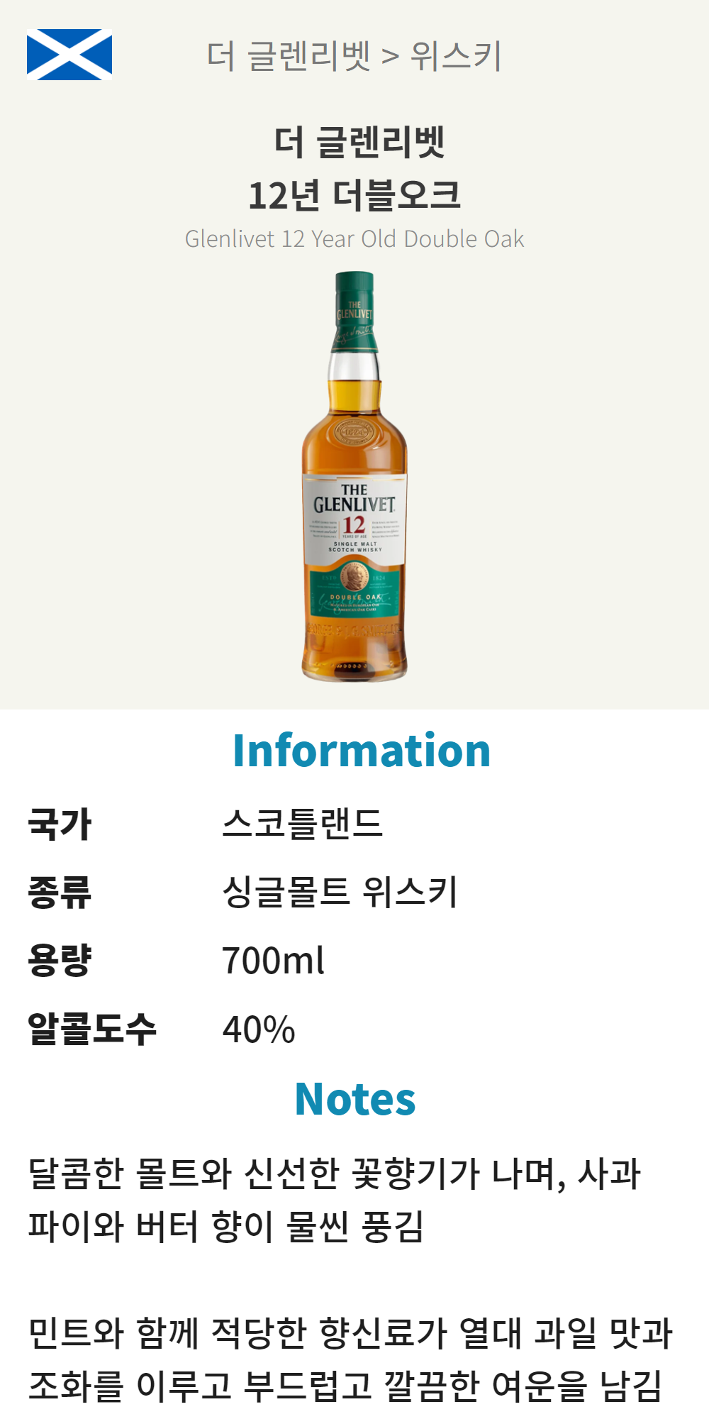 글렌리벳 12년 더블오크 (스코틀랜드/싱글몰트 위스키/700ml/가정)