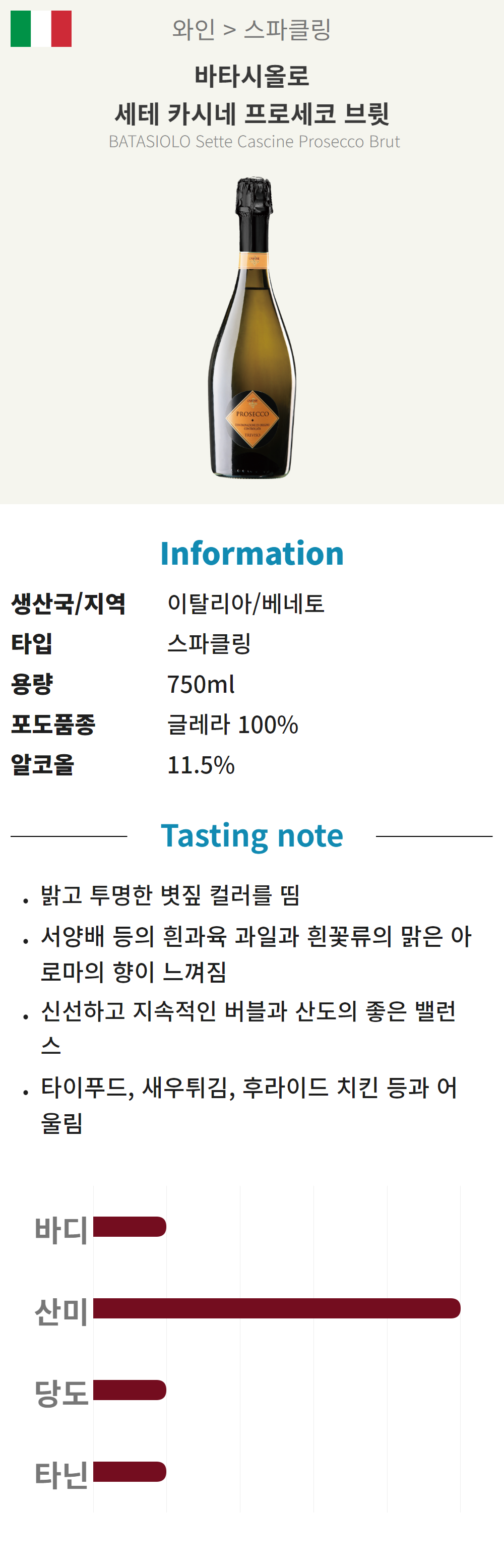 바타시올로, 세테카시네 프로세코 브륏 (이탈리아/산미/스파클링)
