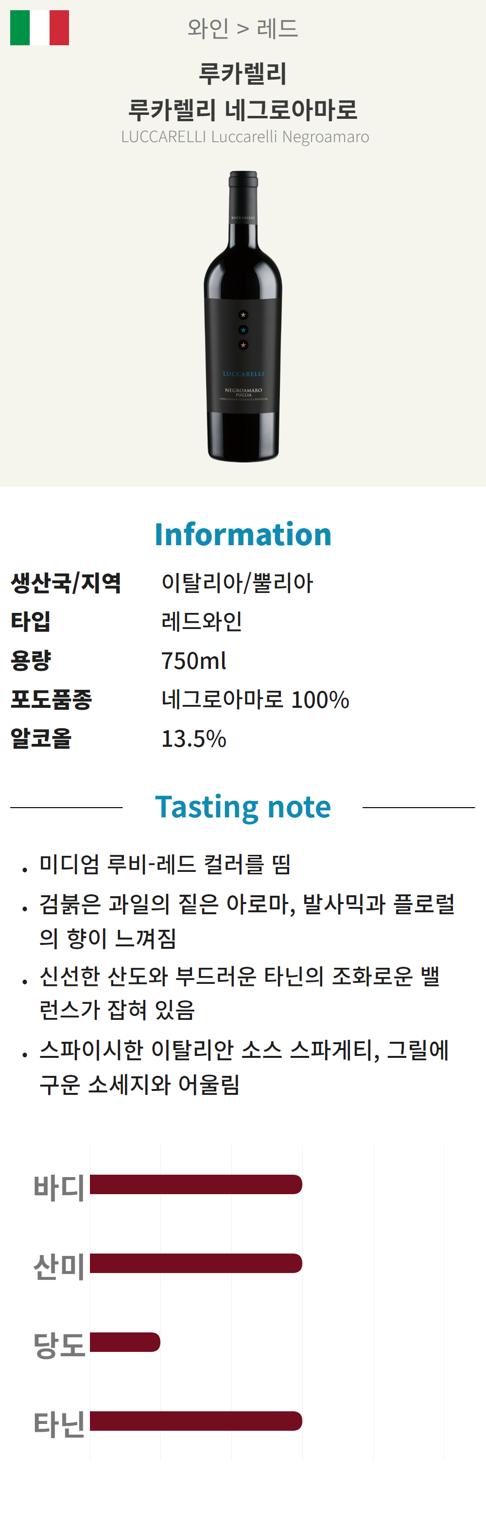 루카렐리, 루카렐리 네그로아마로 (이탈리아/산미/레드)