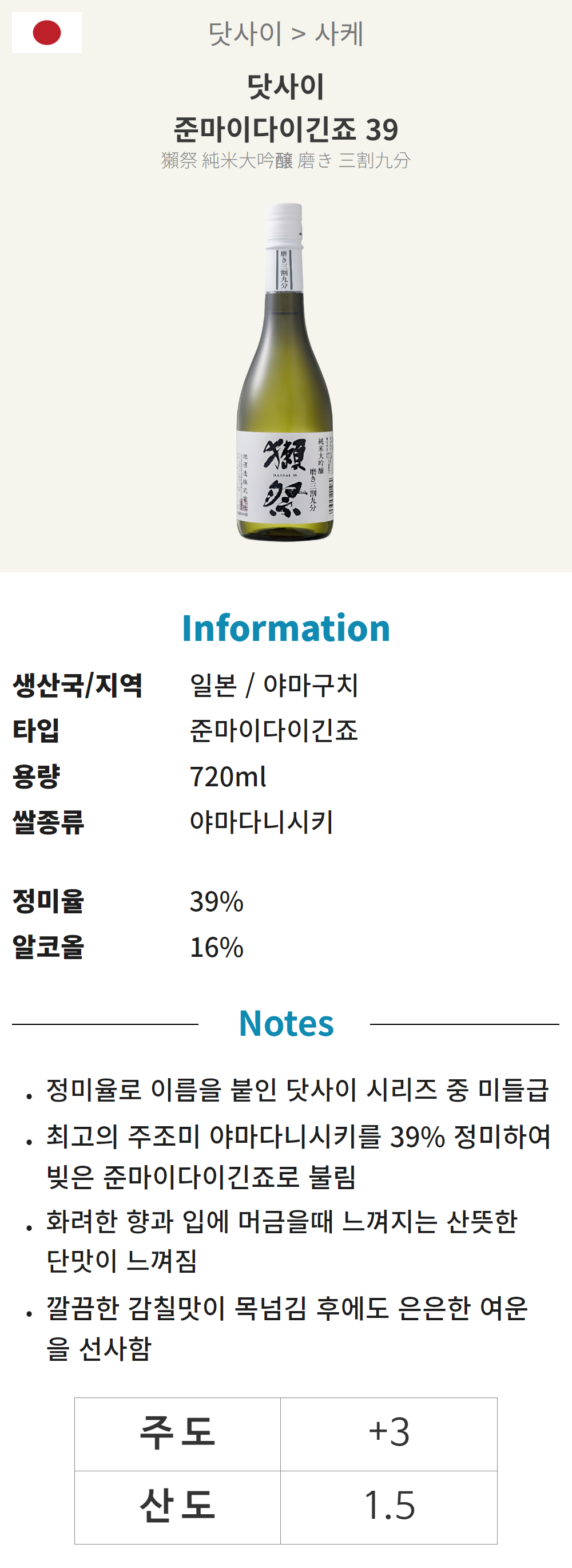닷사이 준마이다이긴죠39 *12 (일본/준마이다이긴죠/720ml/병)