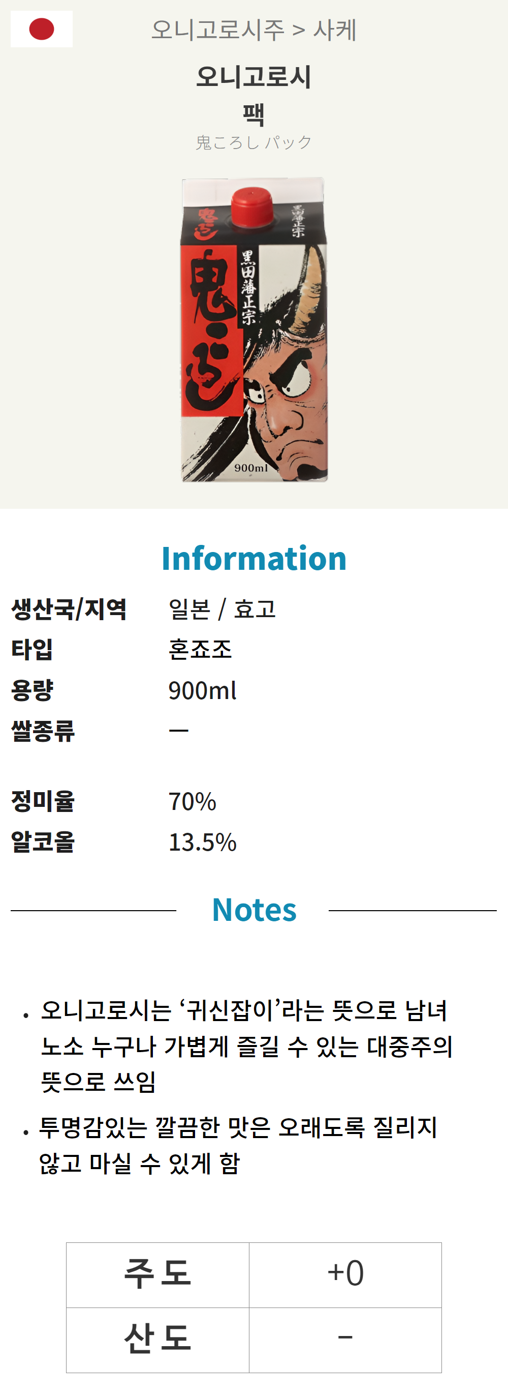 오니고로시*6 (일본/혼죠조/900ml/팩)