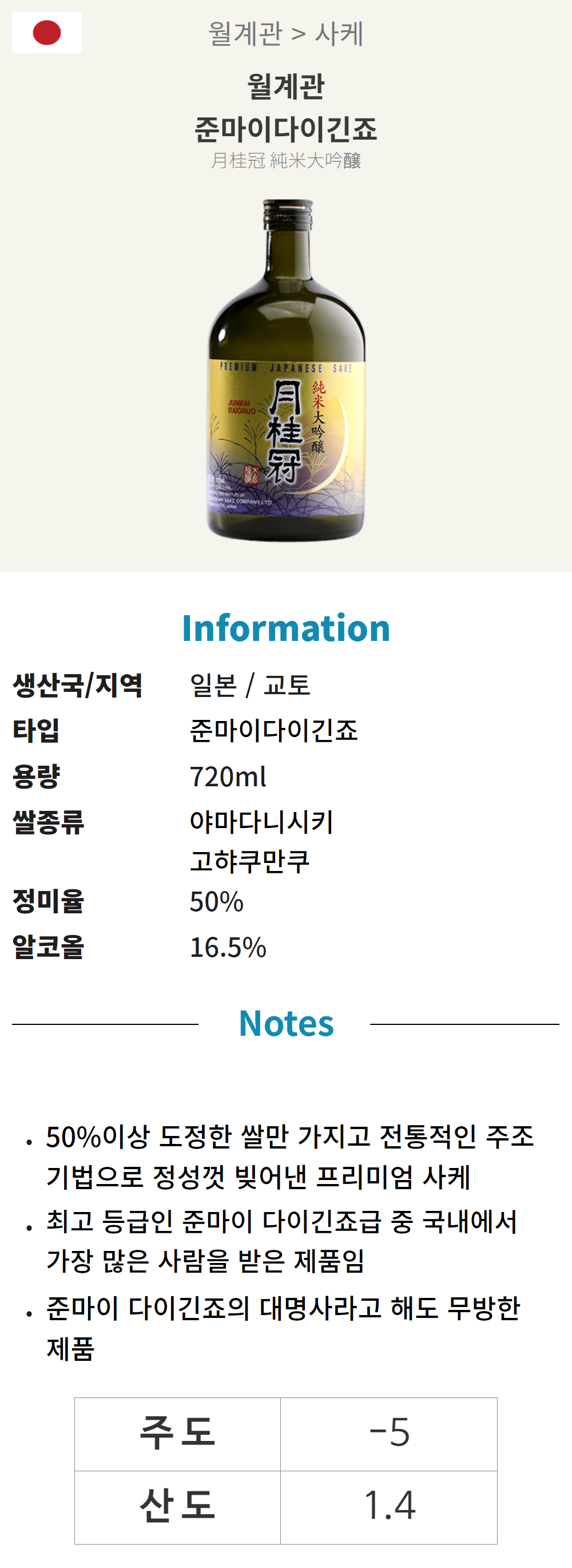 월계관 쥰마이다이긴죠 (일본/준마이다이긴죠/720ml/병)