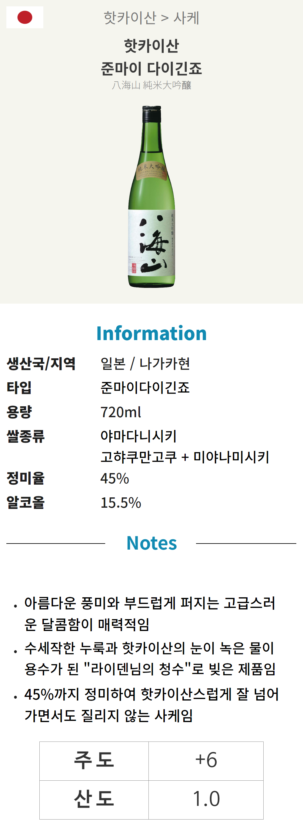 핫카이산 쥰마이다이긴죠 (일본/준마이다이긴죠/720ml/병)
