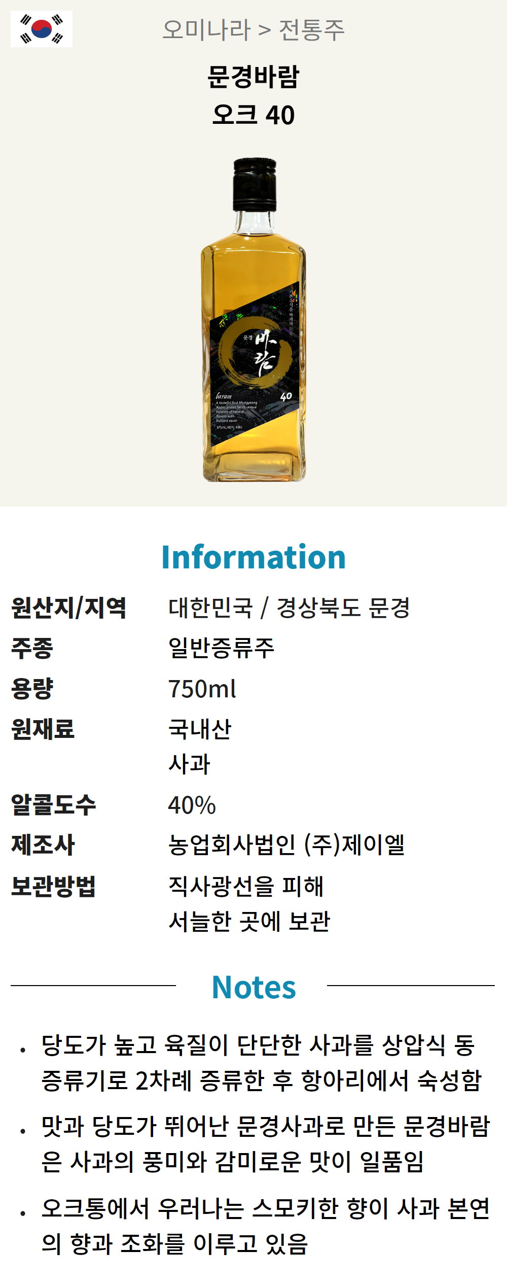 문경바람 오크40 *12 (일반증류주/375ml)
