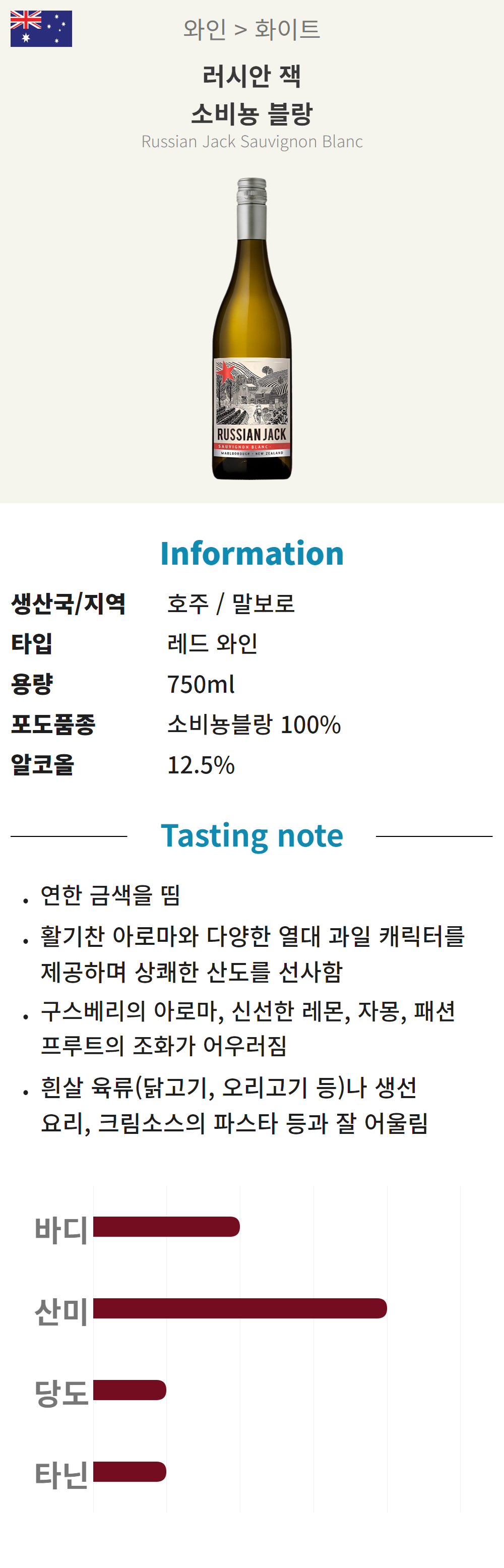 러시안 잭 소비뇽블랑 (뉴질랜드/산미/화이트)