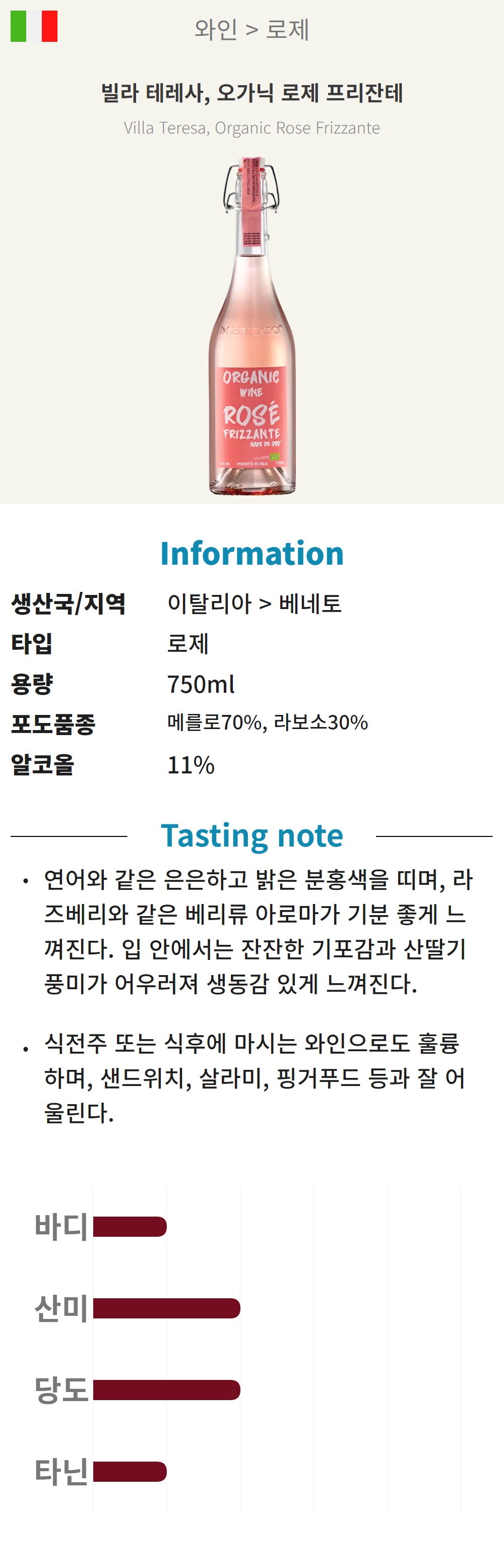 빌라 테레사 오가닉 로제 프리잔테 (이탈리아/드라이/로제)