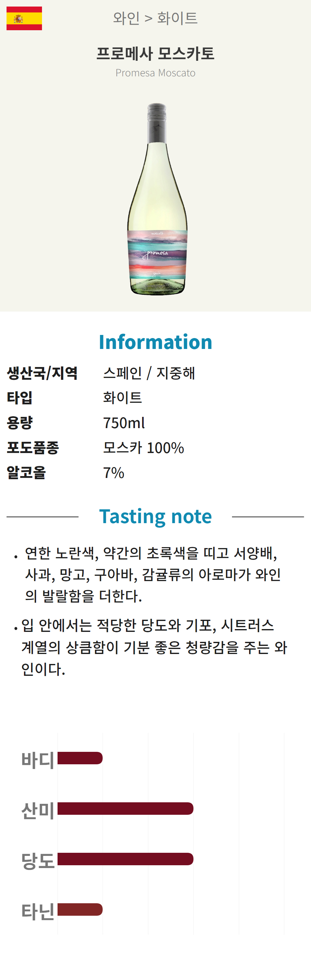 프로메사 모스카토 (스페인/스위트,산미/스파클링)
