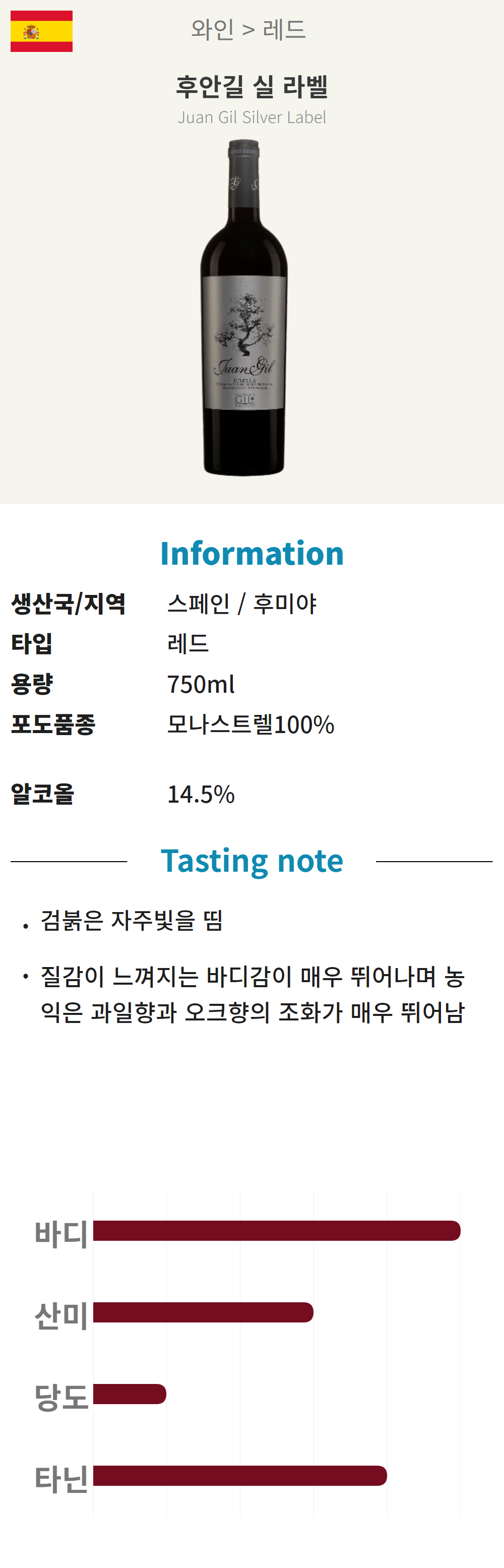 후안 길 실버 라벨 유기농 2021 (스페인/산미/레드)