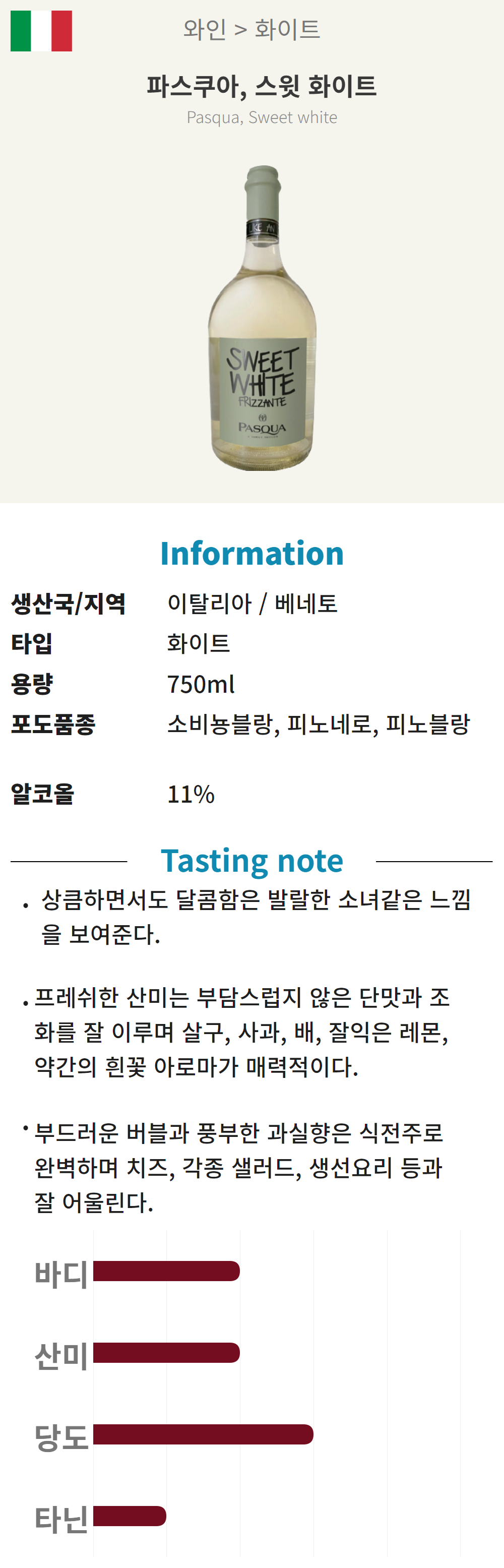 파스쿠아, 스윗 화이트 ( 이탈리아 / 스위트 / 화이트)