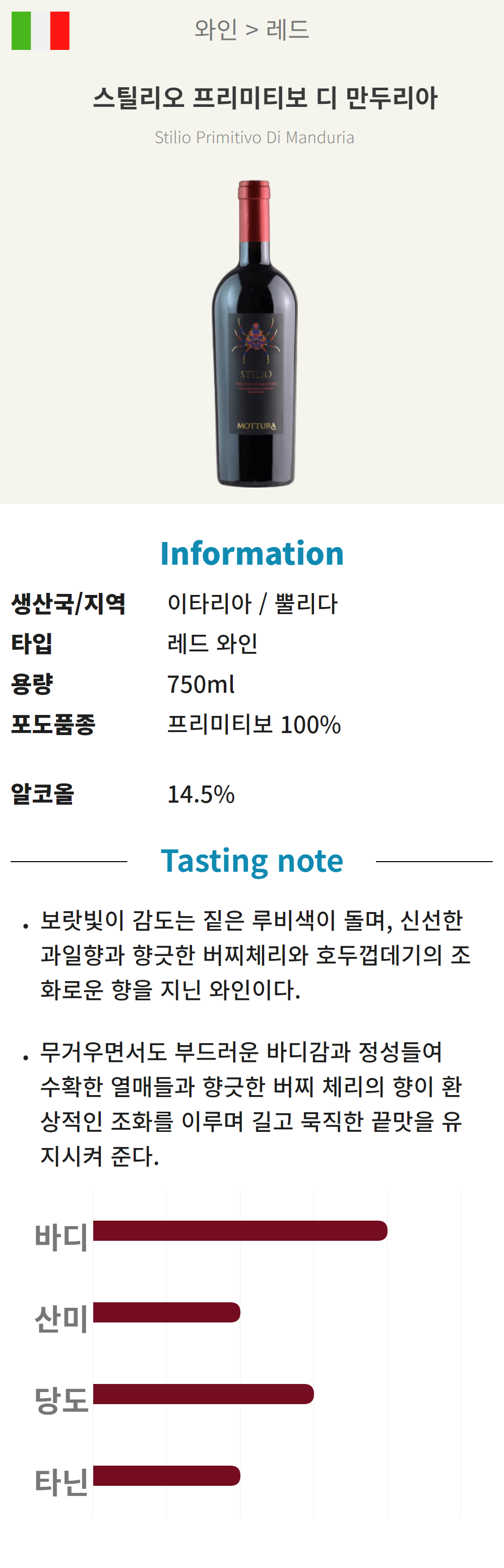 스틸리오 프리미티보 디 만두리아 (이탈리아/세미스위트/레드)