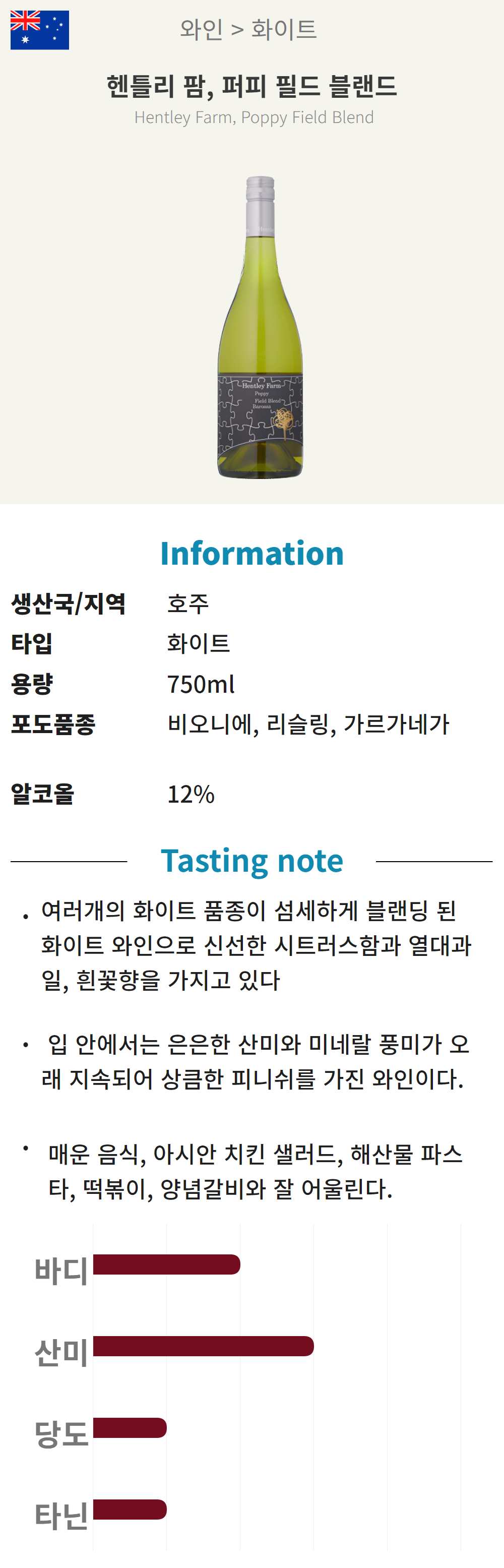 헨틀리 팜, 퍼피 필드 블랜드(호주 / 드라이 / 화이트)