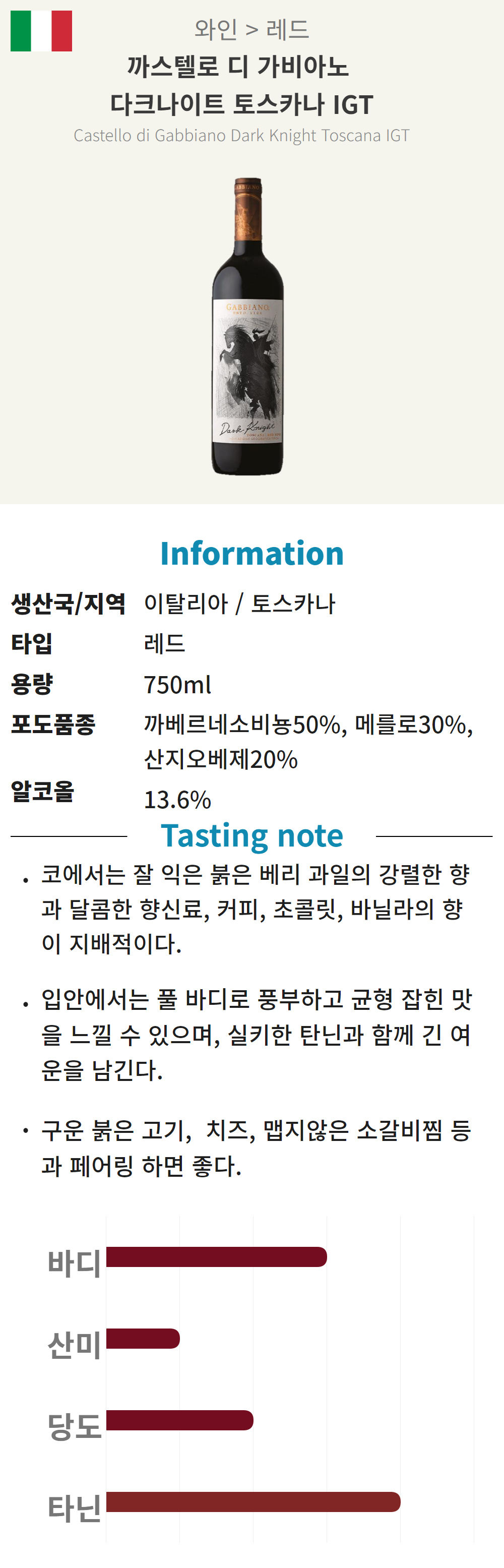 까스텔로 디 가비아노 다크나이트 토스카나 IGT (이탈리아/드라이/레드)