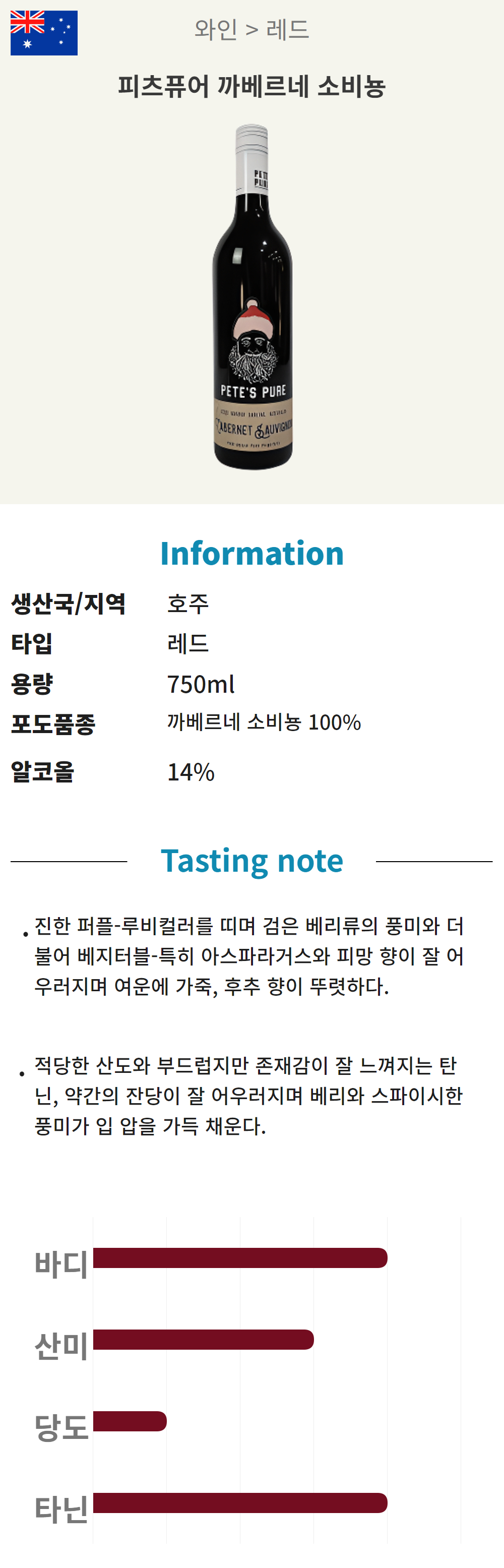 피츠퓨어 까베르네 소비뇽 (호주/드라이/레드)