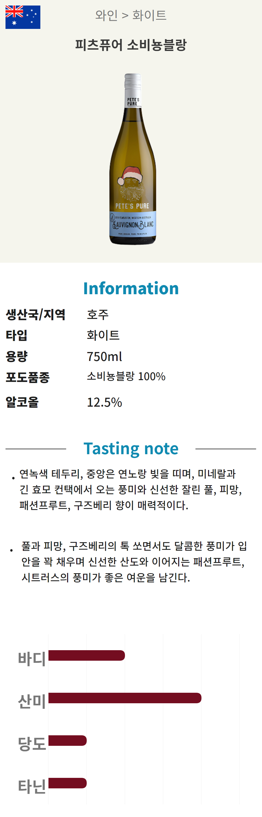 피츠퓨어 소비뇽블랑 (호주/드라이/화이트)