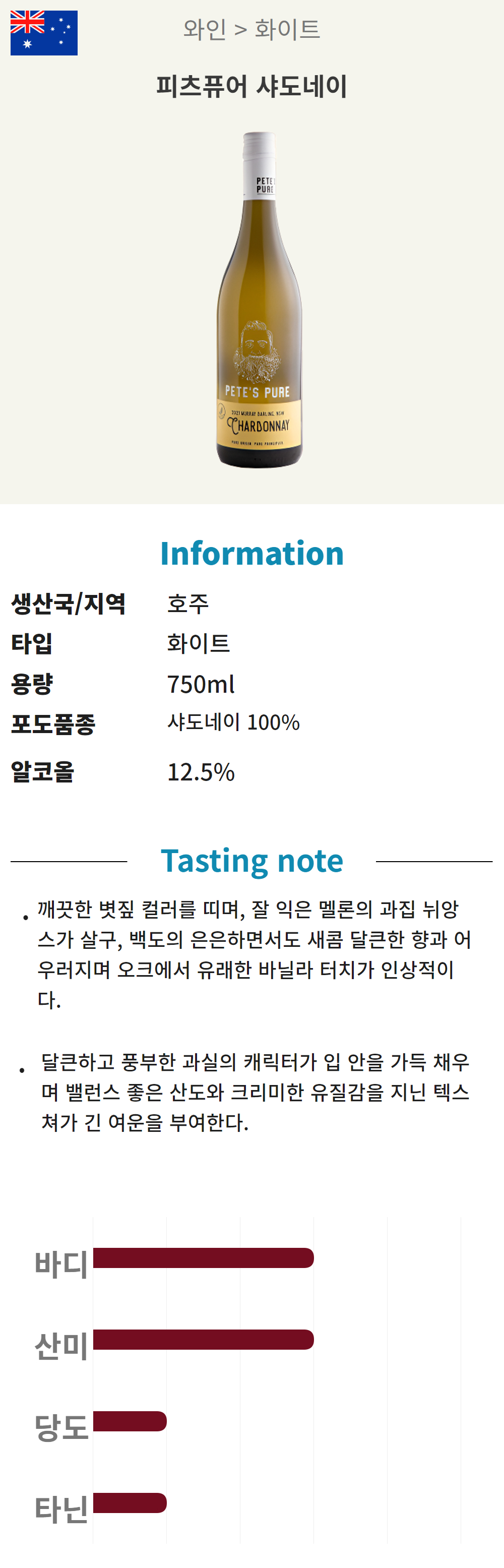피츠퓨어 샤도네이 (호주/드라이/화이트)