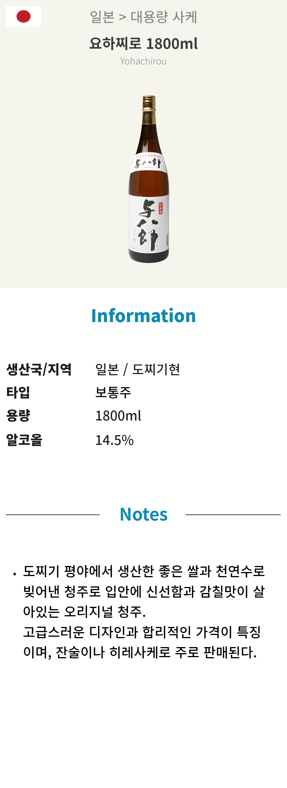 요하찌로1.8L *6 (일본/보통주/1800ml /병)