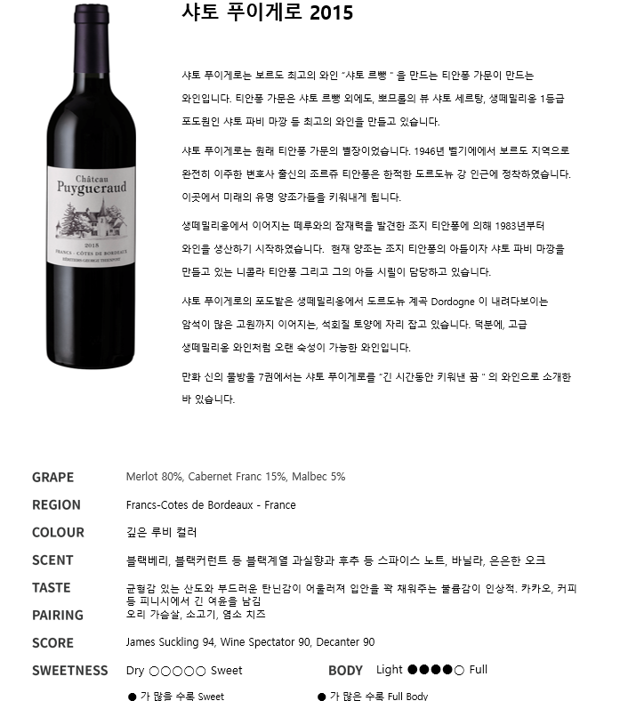 샤또 푸이게로 2015 (프랑스/드라이/레드)