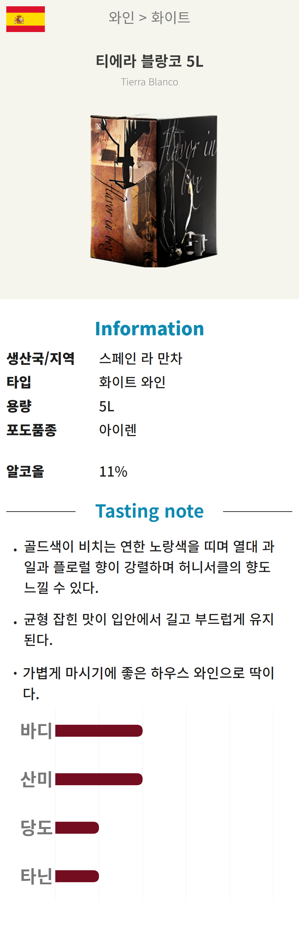 조리용, 하우스 와인으로 추천