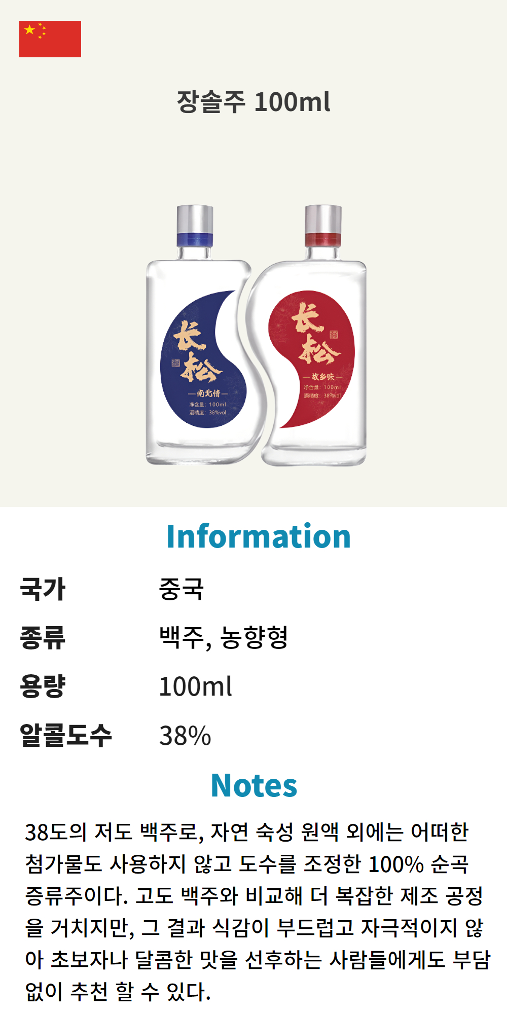 장솔 38도100ml*40(병) (중국/백주/100ml)