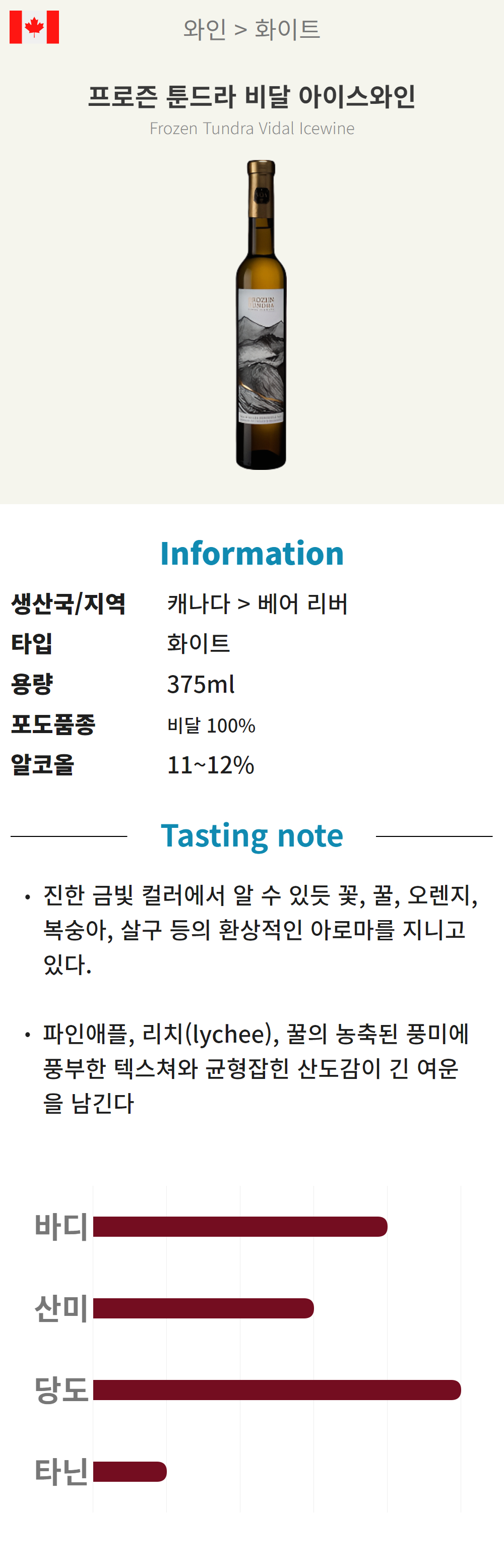 프로즌 툰드라 비달 아이스와인 (캐나다/스위트/화이트)