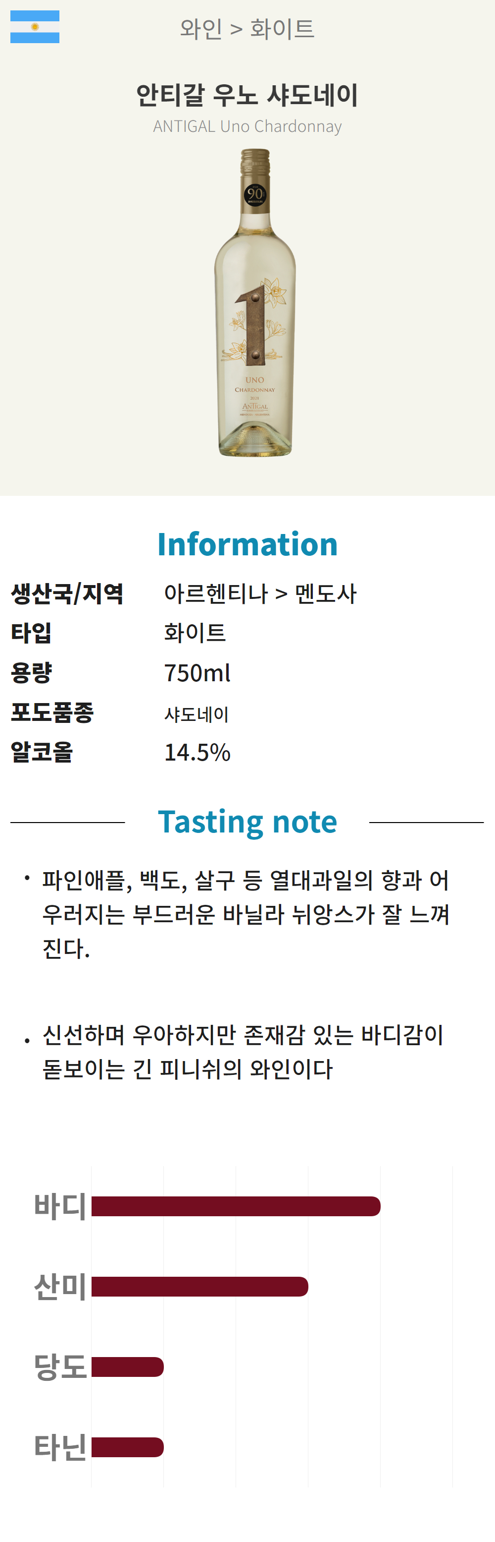 안티갈 우노 샤도네이*6 (아르헨티나/드라이/화이트) ~[단종행사 재고소진시 행사종료]