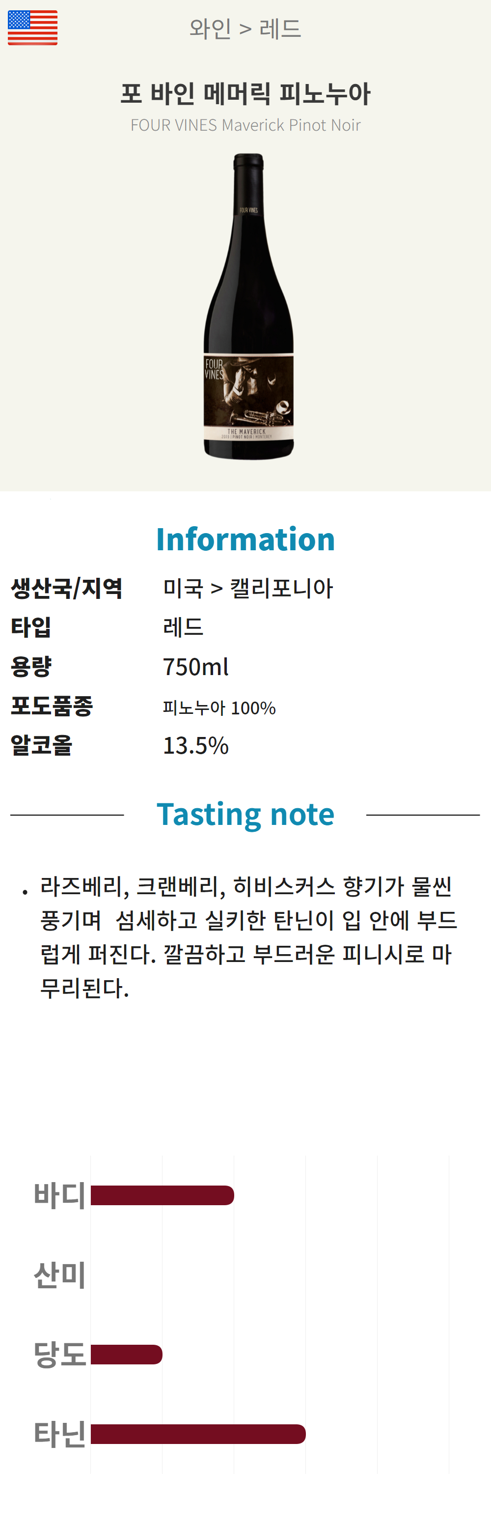 포 바인 메머릭 피노누아 (미국/드라이/레드)