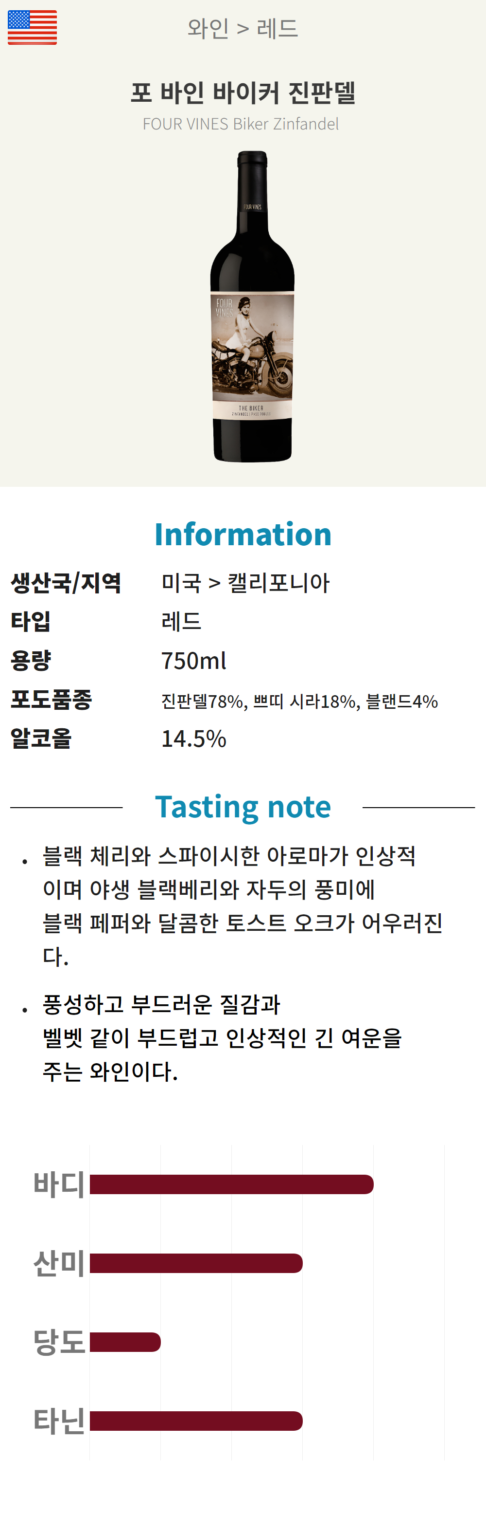 포 바인 바이커 진판델 (미국/드라이/레드)