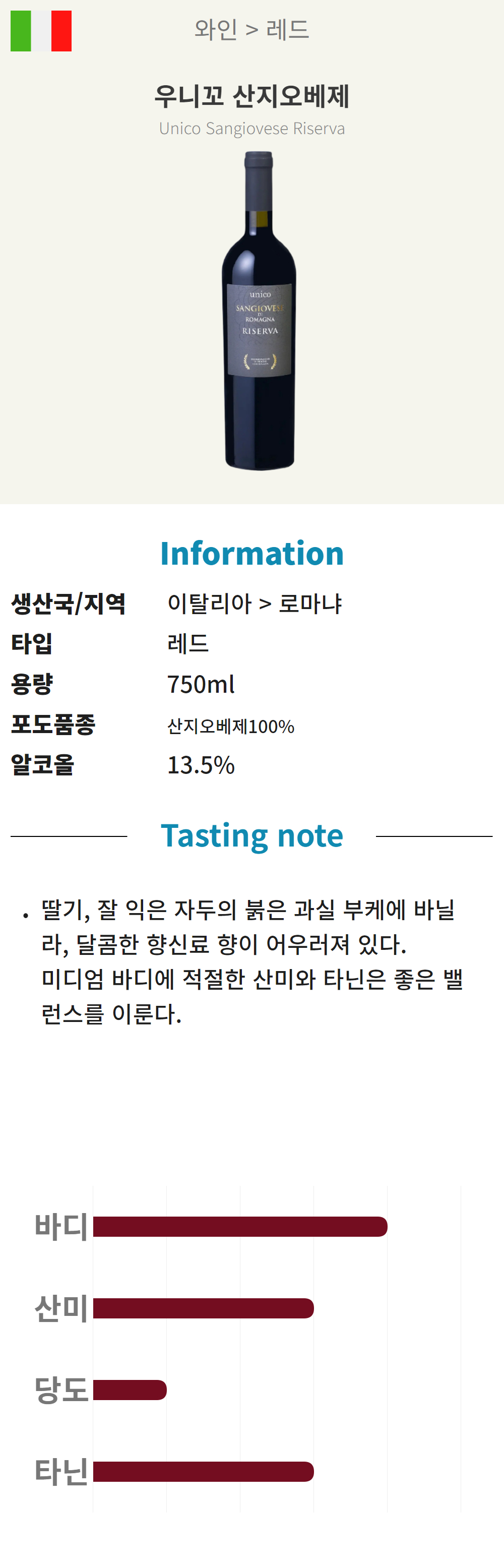 우니꼬 산지오베제 리제르바 (이탈리아/드라이/레드)
