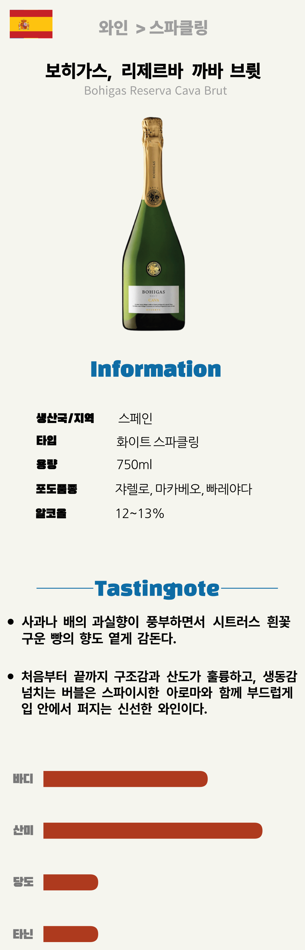 보히가스 리제르바 까바 브륏 (스페인/드라이/화이트/스파클링)