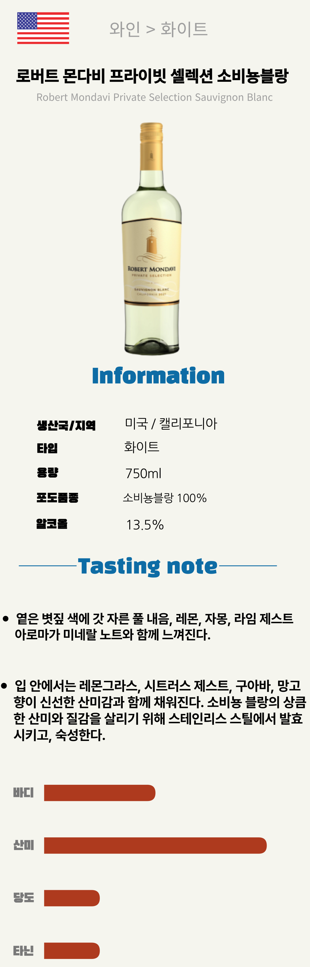 로버트 몬다비 프라이빗 셀렉션 소비뇽블랑 (미국/산미/화이트)