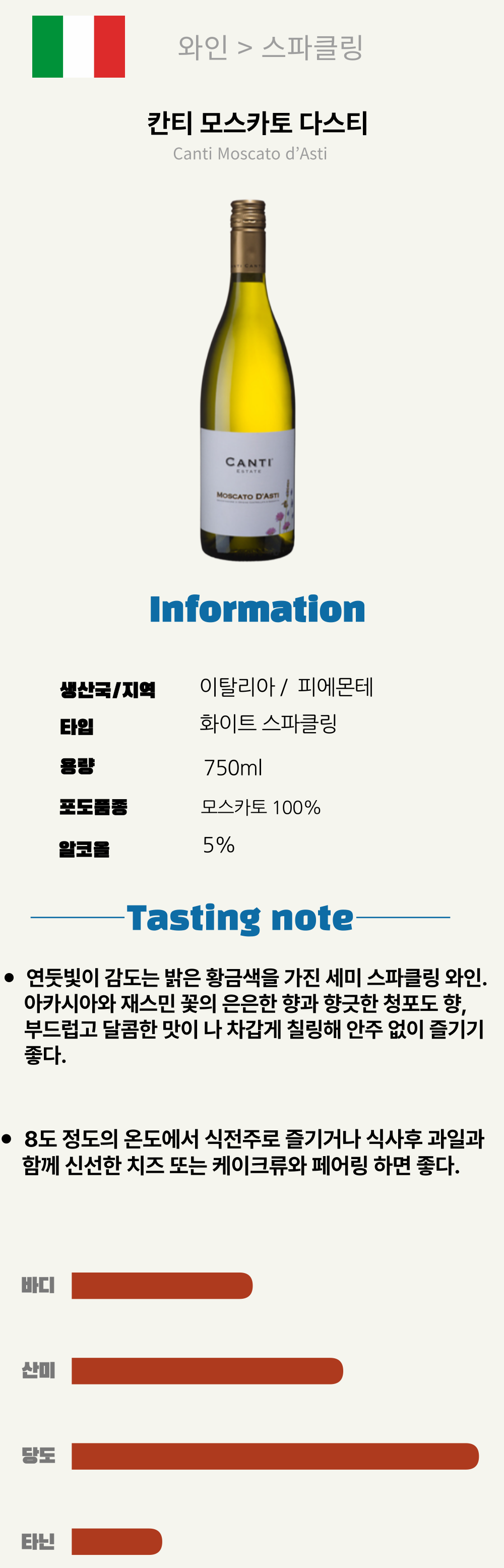 칸티모스카토 다스티(이탈리아/스위트/스파클링)