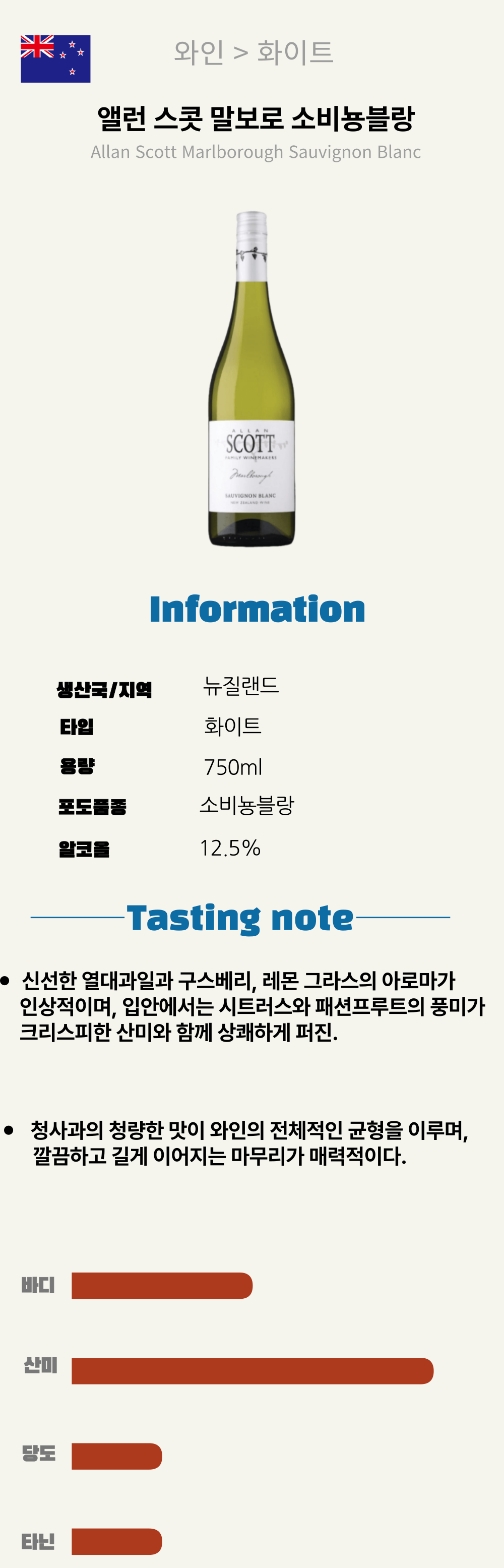 앨런 스콧 말보로 소비뇽블랑 (뉴질랜드/산미/화이트)