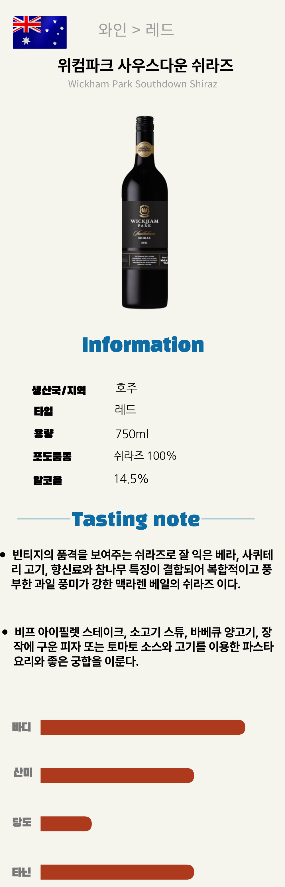 위컴파크 사우스다운 쉬라즈 (호주/드라이/레드)