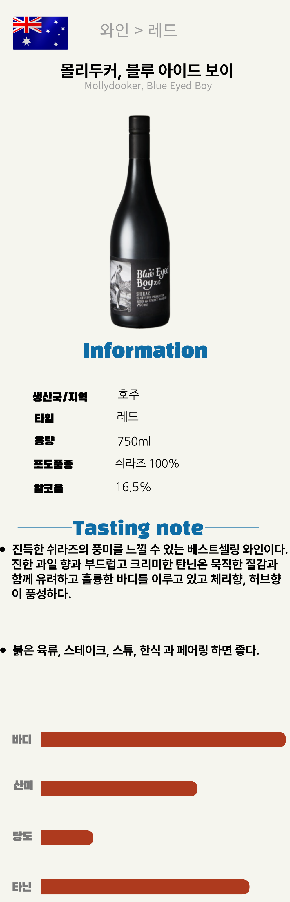 몰리두커, 블루 아이드 보이 (호주/드라이/레드)