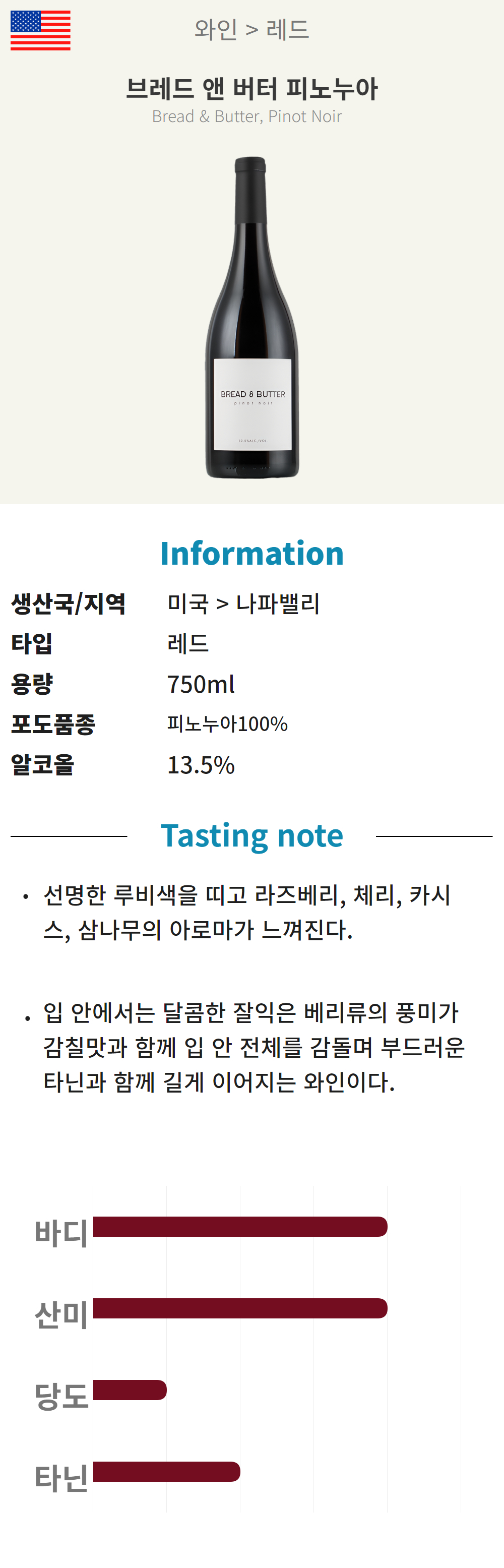 브레드 앤 버터 피노누아*6 (미국/드라이/레드)
