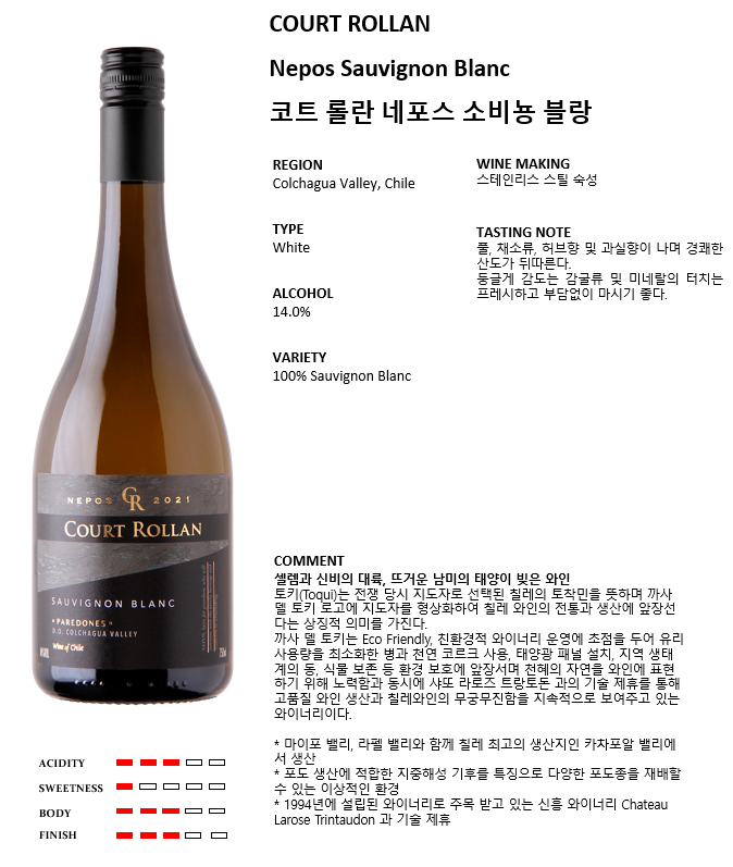 코트 롤란 네포스 소비뇽블랑*6 (칠레/드라이/화이트)